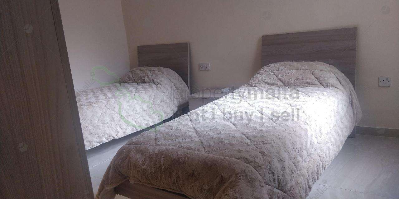 A modern, two-bedroom, first-floor maisonette located within walking distance of the airport. The layout consists of an open-plan kitchen/living/dining room, two double bedrooms, bathroom, yard, laundry room and full ownership of a private roof terrace. Property is being offered fully equipped and pet friendly.