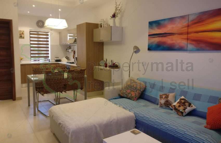 Fully furnished first floor maisonette located in a quiet area of Safi, consisting of a private entrance, fitted kitchen/dining, living room, one double and one single bedroom, bathroom, laundry room and a roof terrace.