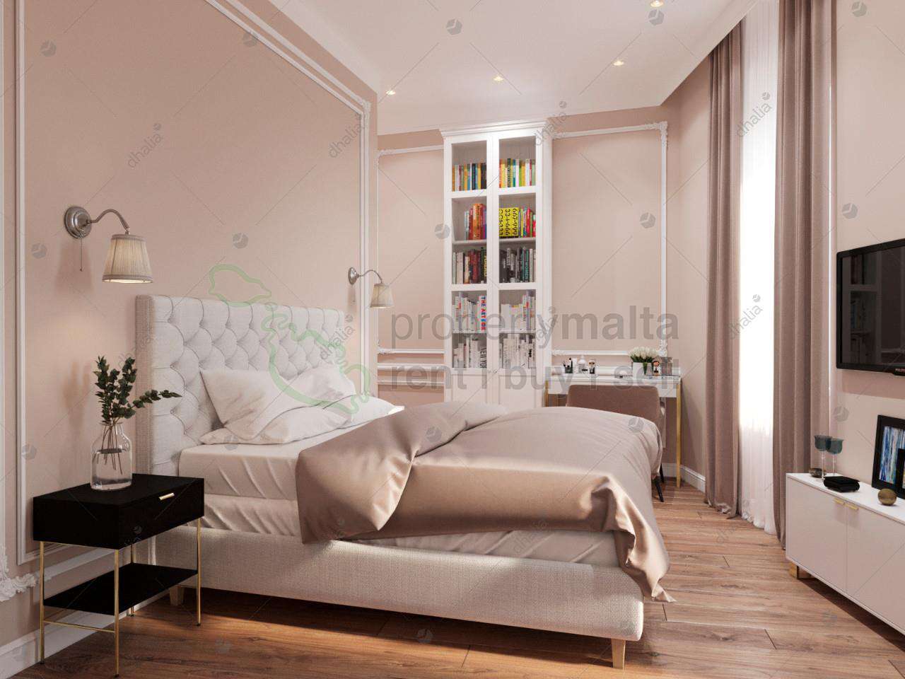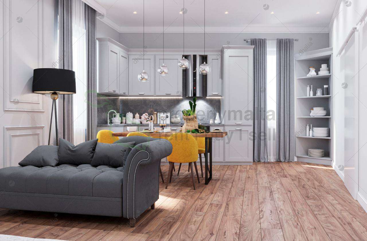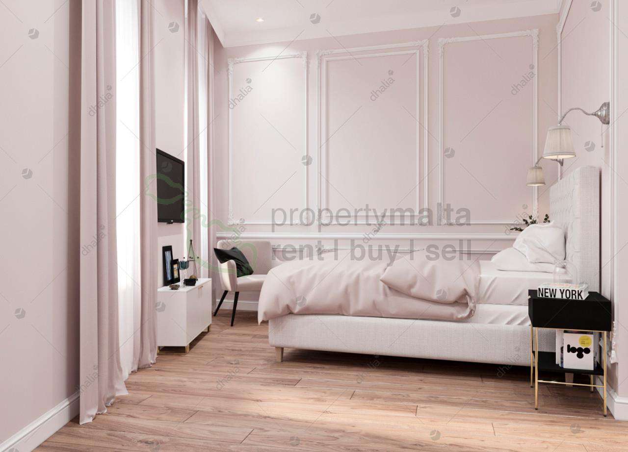 Mixed residential and office block in the very center of Cospicua, a town which is five minutes away from Valletta by ferry. The property is 10 metres away from the main square of Cospicua and 50 metres from the sea and the American University. The building is beautifully lit up in the evening and designer finished inside. The design was prepared by the foreign design firm. Cospicua is one of three cities which were the main location of knights in 16-18 centuries. The area has many noble sights since that times, such as Fort Sant Angelo and others. Walking though the small streets of three cities will bring you back to the glorious knights history of the Maltese islands. The boutique block consists of three apartments finished to very high standards in “Modern Classic” style, one apartment per floor making a perfect home and rental business in the best location. Each apartment has large kitchen/living room with two balconies and plenty of light, one bedroom with walk-in wardrobe and a separate entry room/washroom, designed to be fitted with washing machine and a tumble dryer and having plenty of space for storage of cloths and household goods. Each apartment has Italian wooden parquet flooring throughout the apartment, except the bathroom and the washroom. Underfloor heating is installed in each bathroom, which creates cozy atmosphere especially in winter. All walls are insulated which guarantee that the apartments will be warm and not humid. All apartments are fitted with soffit ceilings, VRF air-conditioning, fire/burglar alarm system, cameras, expensive PVC windows and many other extras. On the ground floor the one will find the modern office, having two separate entrances. The office has AC and toilet, as well as all fittings for a small kitchen. On the ground floor there is also one-car garage with the direct access to the common areas of the residential block via the lift. The lift can bring you directly to the roof which complements this property.