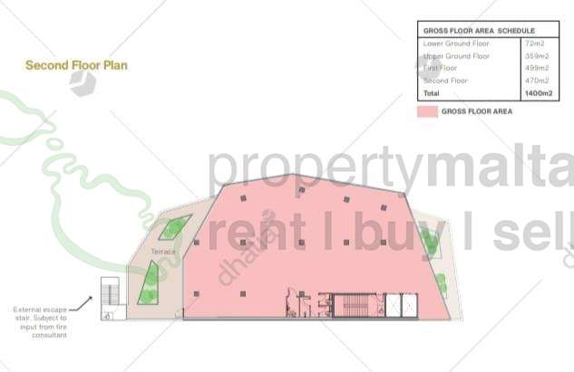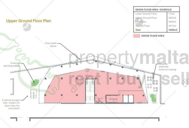 The property is a commercial site that includes a building permit that has been recently authorized by the Planning Authority. The permit allows for the construction of a distinct, standalone commercial building spanning four levels and offering a gross total floor space of 1,400 square metres. Additionally, there is a rooftop garden located above the building.