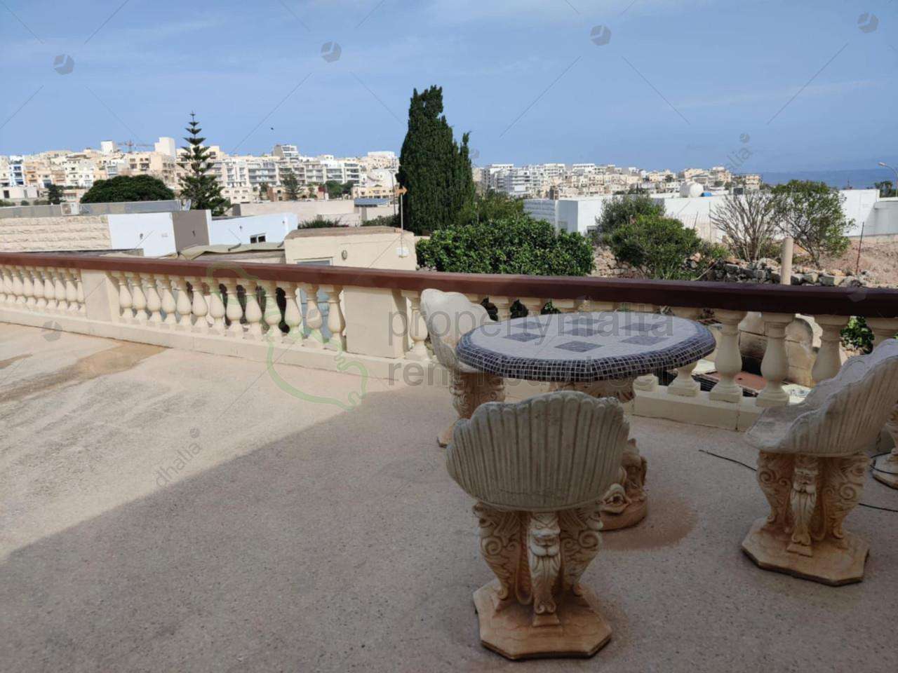 Fully detached bungalow set in the highly sought-after area of Mellieha, built on solid ground. Set on a plot of approximately 1,100 square metres, this property enjoys ample outdoor area with a wraparound garden and terraces. Upon entering the property, you’ll be greeted by a long driveway and carport offering ample space for multiple vehicles. The accommodation includes a welcoming entrance hall, a cozy sitting room, dining / living room, a fully fitted kitchen with a breakfast area, three bedrooms (main with en-suite bathrooms), a main bathroom and a study room. Property is in need to full modernization but once done up it will make a beautiful home.