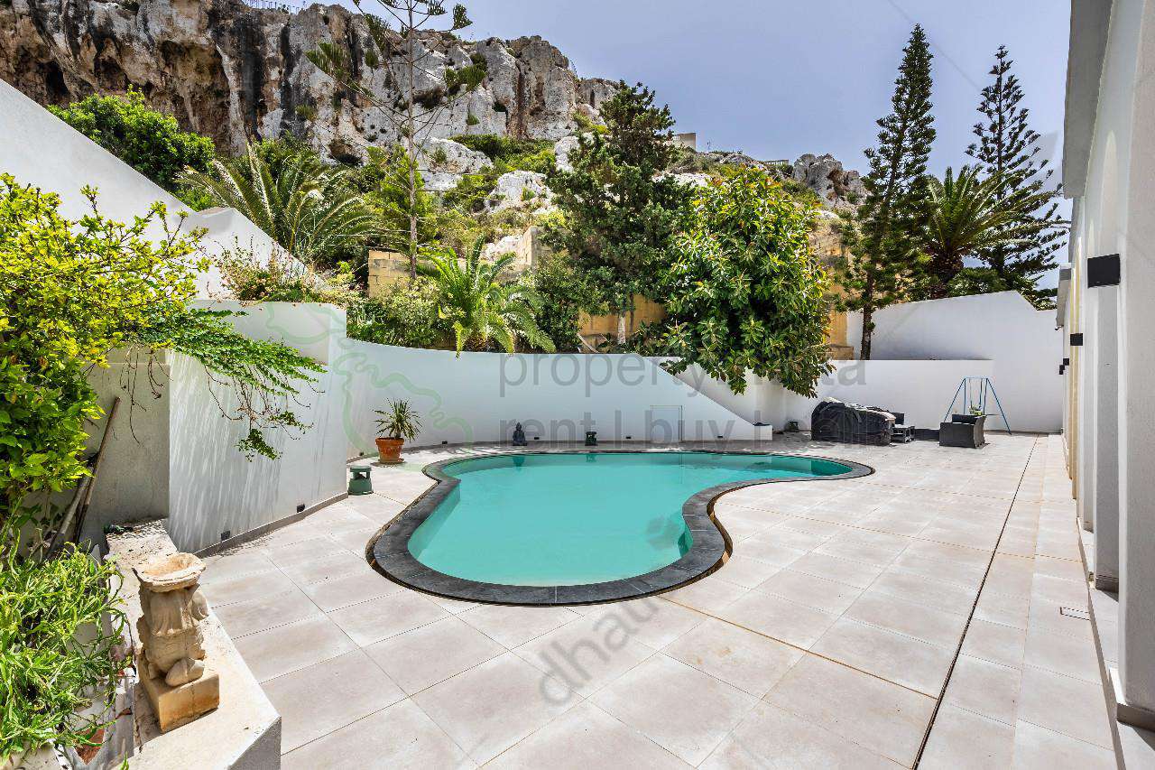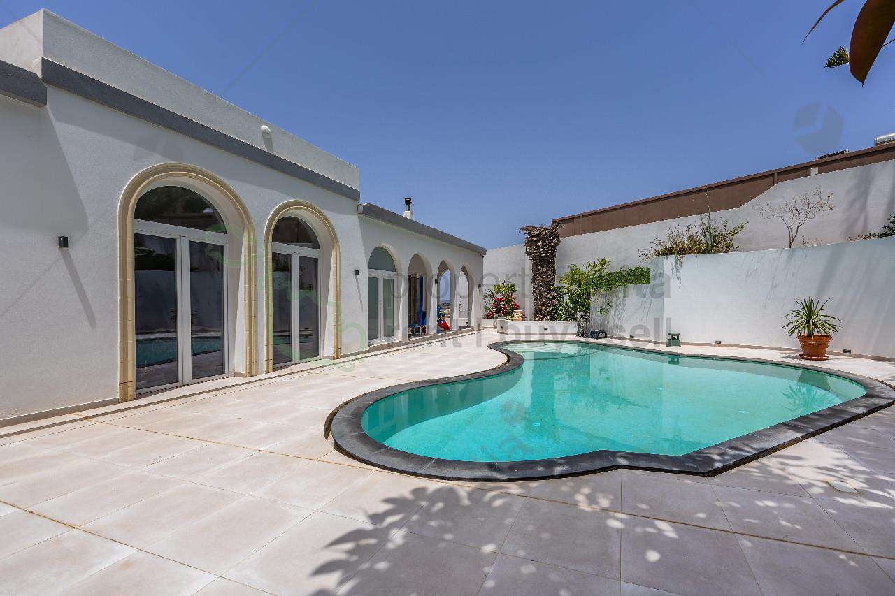 Luxurious fully Detached Villa with stunning views in Sant Marija Estate. Welcome to an extraordinary opportunity to own an absolutely stunning property that offers unparalleled luxury living with breathtaking views that stretch across to Gozo. The villa features a luxurious entrance into an open-plan kitchen, living, and dining area that seamlessly flows onto a series of terraces. These terraces provide an idyllic outdoor living experience, perfect for entertaining or simply enjoying the serene surroundings. The highlight of this villa is undoubtedly the expansive outdoor area. A spacious private pool, complete with a large deck area, invites you to relax and unwind. The study room which also leads out onto a terrace, offers a tranquil space to work or read while soaking in the stunning views, three beautifully appointed bedrooms, ensuring privacy and comfort. The master bedroom comes with ensuite facilities, providing a private retreat within this luxurious home. A well-designed main bathroom serves the other two bedrooms. This property is equipped with a range of modern amenities to enhance your living experience, having a functional Fireplace, air conditioning throughout, equipped with the facility and the ambiance of intelligent lighting system, solar panels, luxuriate in the elegance of marble flooring throughout the home. Also included is a one-bedroom Flatlet, ideal for guests or as a rental opportunity, the flatlet offers privacy and comfort. Furthermore, another studio apartment offering a versatile space that can serve as a home office, guest suite, or creative studio. Parking is never an issue with this property. It includes a two-car street-level garage and further parking available in the private driveway, ensuring ample space for multiple vehicles. This fully detached villa is more than just a home, it’s a lifestyle. With its exceptional views, luxurious amenities, it offers an unparalleled living experience.