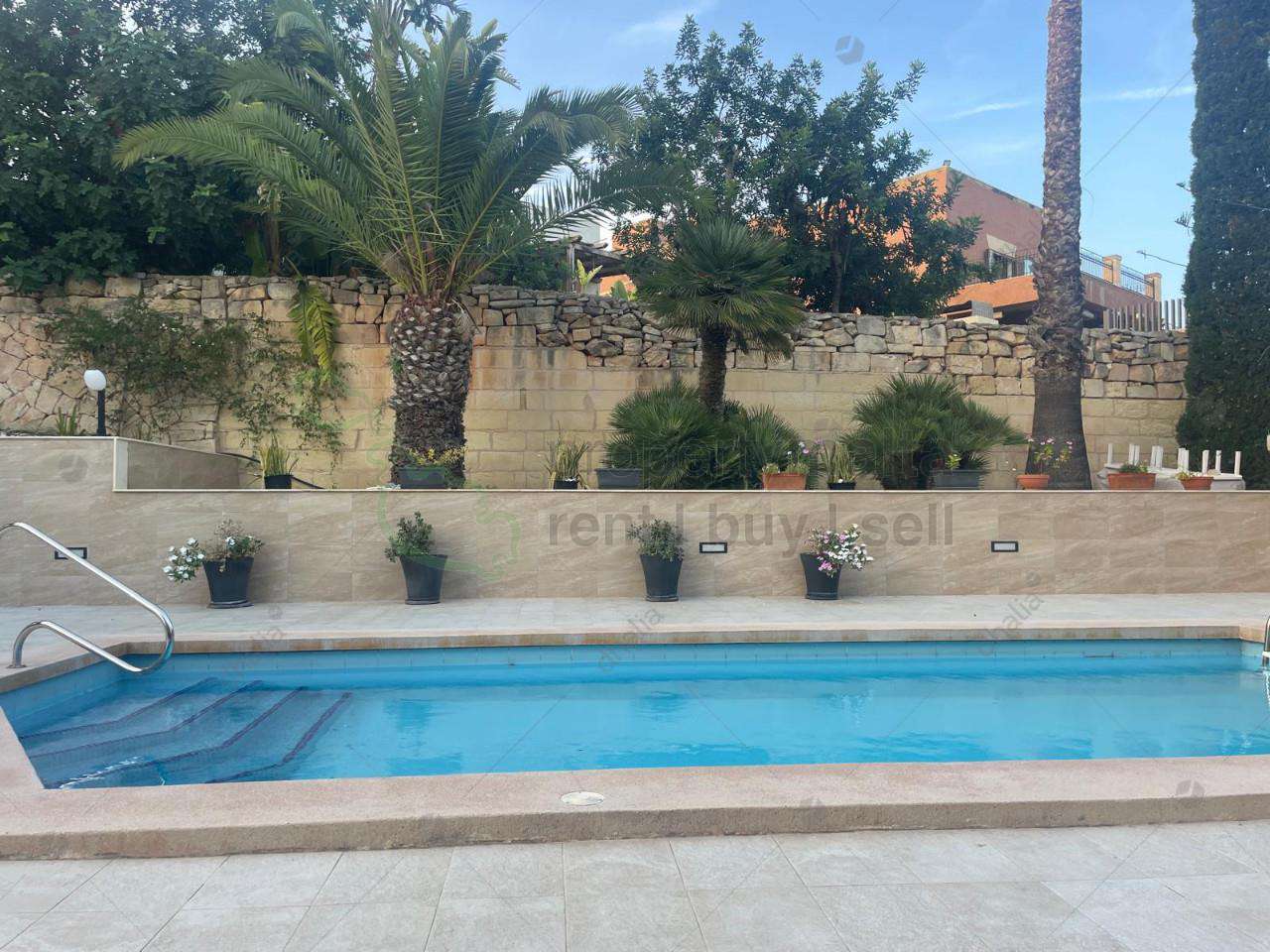 This fully detached villa, located at High ridge, boasts beautiful surrounding .gardens and a spacious driveway that can accommodate up to 3-4 cars. Additionally, there are two lock-up garages located side by side. The property is now available for occupancy and features a large pool and BBQ area. Inside, the villa includes an entrance hall, a formal living and dining room with a cozy fireplace, a terrace, and a study area. The dining room is connected to the kitchen, which overlooks the pool area, and a separate living room. A restroom and washroom are also included on this floor. On the upper floor, you will find two generously sized double bedrooms with en-suite bathrooms. There is also a landing area, which can be used as an additional living room, two more bedrooms, and a study. The terraces located on this floor offer stunning views of the pool area and the front entrance. This property is elegantly finished with a classic touch and features a charming courtyard in the middle, allowing for plenty of natural light to fill the home. Price includes gardener and pool attendant every week. Please contact the agent to schedule a viewing.