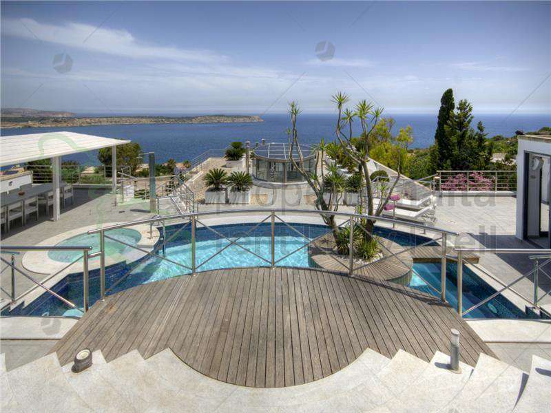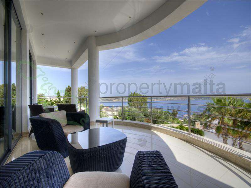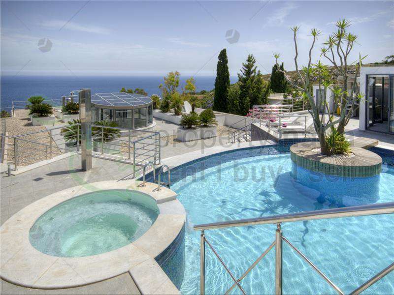 Overlooking the beautiful azure waters and spectacular scenery of the north coast of Malta, is this unique fully detached villa. Recently constructed of 550square metres in 2320 square metres of land in a superb position in this much sought after location .The interior comprises entrance hall leading to a private office and a fully equipped gymnasium with sauna, also a cinema room, and a wine cellar. On the first floor there is a spacious open plan lounge /dinning having surrounding terraces with a central fireplace. Also on the same floor is a fully fitted and equipped kitchen. There are three double bedrooms all with en suites and built in wardrobe .The grounds of this magnificent property contain swimming pool with cascade surrounded by an extensive sunbathing terraces, a separate barbecue/gazebo and delightful dinning and chill-out terraced areas, and decks.