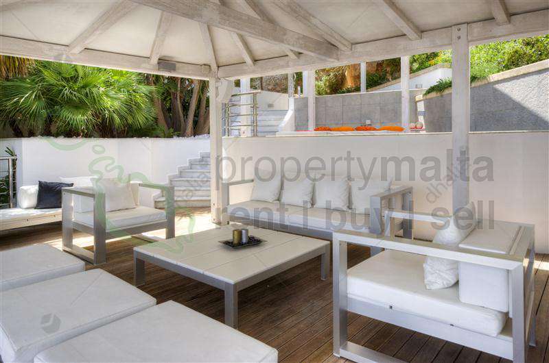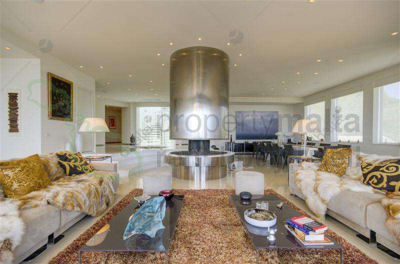 Overlooking the beautiful azure waters and spectacular scenery of the north coast of Malta is this unique fully detached villa. Recently constructed on 550 square metres of indoor space enjoying 2320 square metres of land in a superb position in this much sought-after location. The interior comprises an entrance hall leading to a private office and a fully equipped gymnasium with a sauna, also a cinema room, and a wine cellar. On the first floor, there is a spacious open plan lounge /dining having surrounding terraces with a central fireplace. Also on the same floor is a fully fitted and equipped kitchen. There are three double bedrooms all with en suites and a built-in wardrobe. The grounds of this magnificent property contain a swimming pool with a cascade surrounded by extensive sunbathing terraces, a separate barbecue/gazebo and delightful dining and chill-out terraced areas, and decks. The extensive gardens are laid out for ease of maintenance having an irrigation system throughout. Highly recommended for a private viewing.