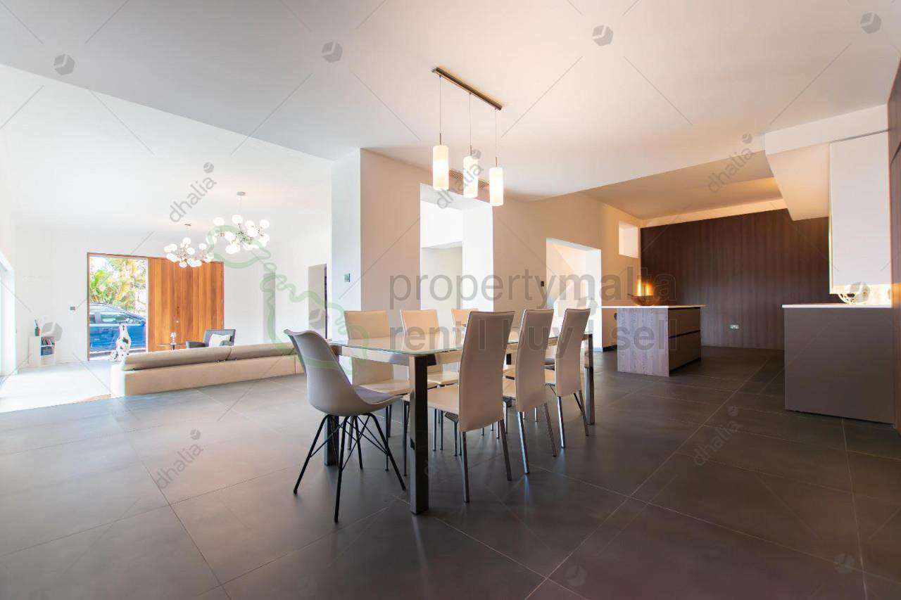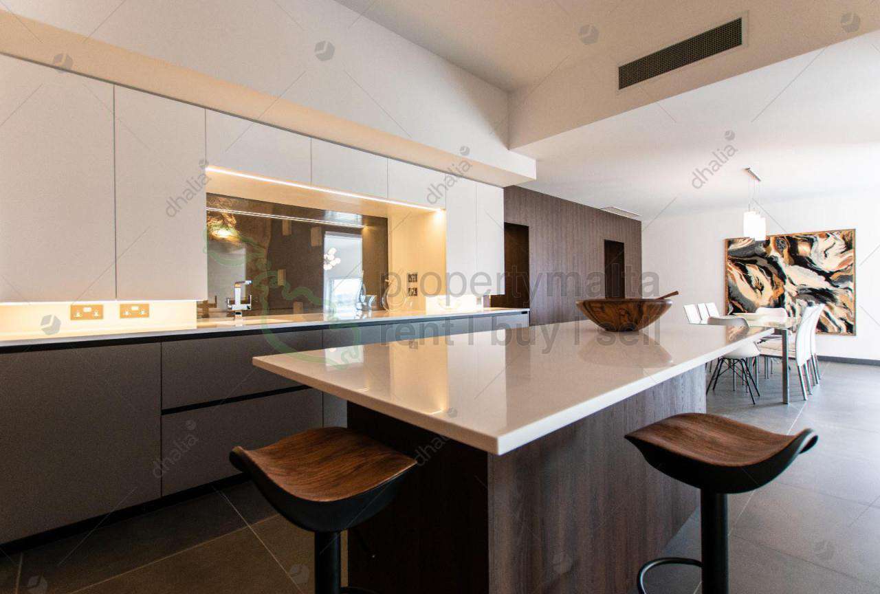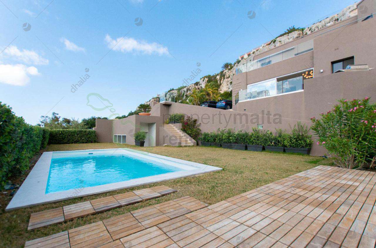 Unique and classy luxurious DETACHED VILLA, with spacious accommodation in Mellieha, in a tranquil private setting surrounded by a landscaped pool and garden area. This magnificent five-bedroom, four-bathroom home has everything to offer you, situated just a few minute`s drives away from the beach, shops, restaurants, and the village core and located in a quiet cul-de-sac in a highly sought-after area enjoying expansive views towards Mellieha Bay, Comino, and Gozo. The 400m2 luxury interior offers an open plan entry foyer, a lounge with contemporary features leading to a BBQ outdoor area, a stylish fully equipped Pedrini kitchen, a rock-cave wine cellar, and another sitting room perfect for relaxing. The master bedroom has a log fireplace, a walk-through walk-in wardrobe, and an ensuite. There`s a junior suite, another two double bedrooms, one with an ensuite bathroom, and another double bedroom with a sofa-bed and study area, and the fifth bedroom enjoys a TV lounge, all enjoying breathtaking sea views. Complementing this luxury property is a one-car LVG, a two-car carport, and additional off-street parking for another six cars.