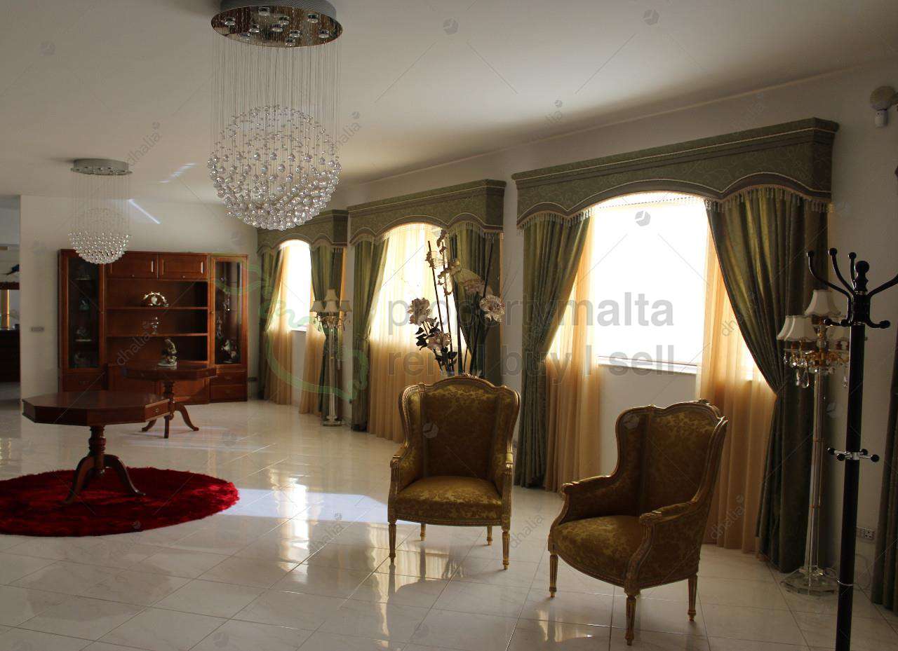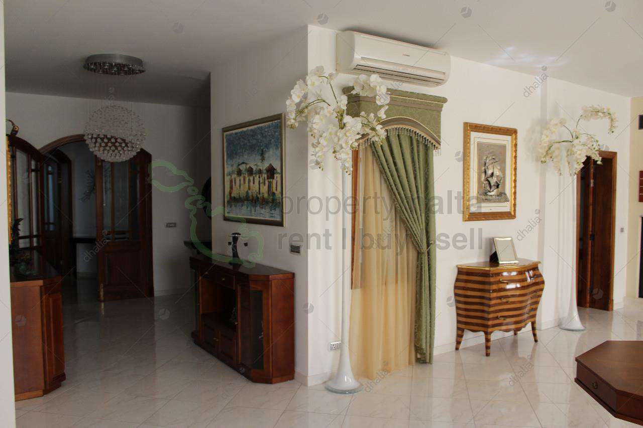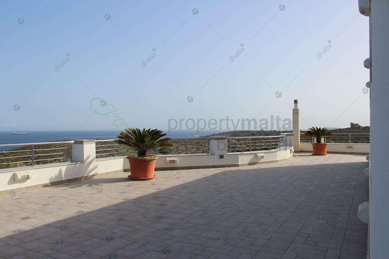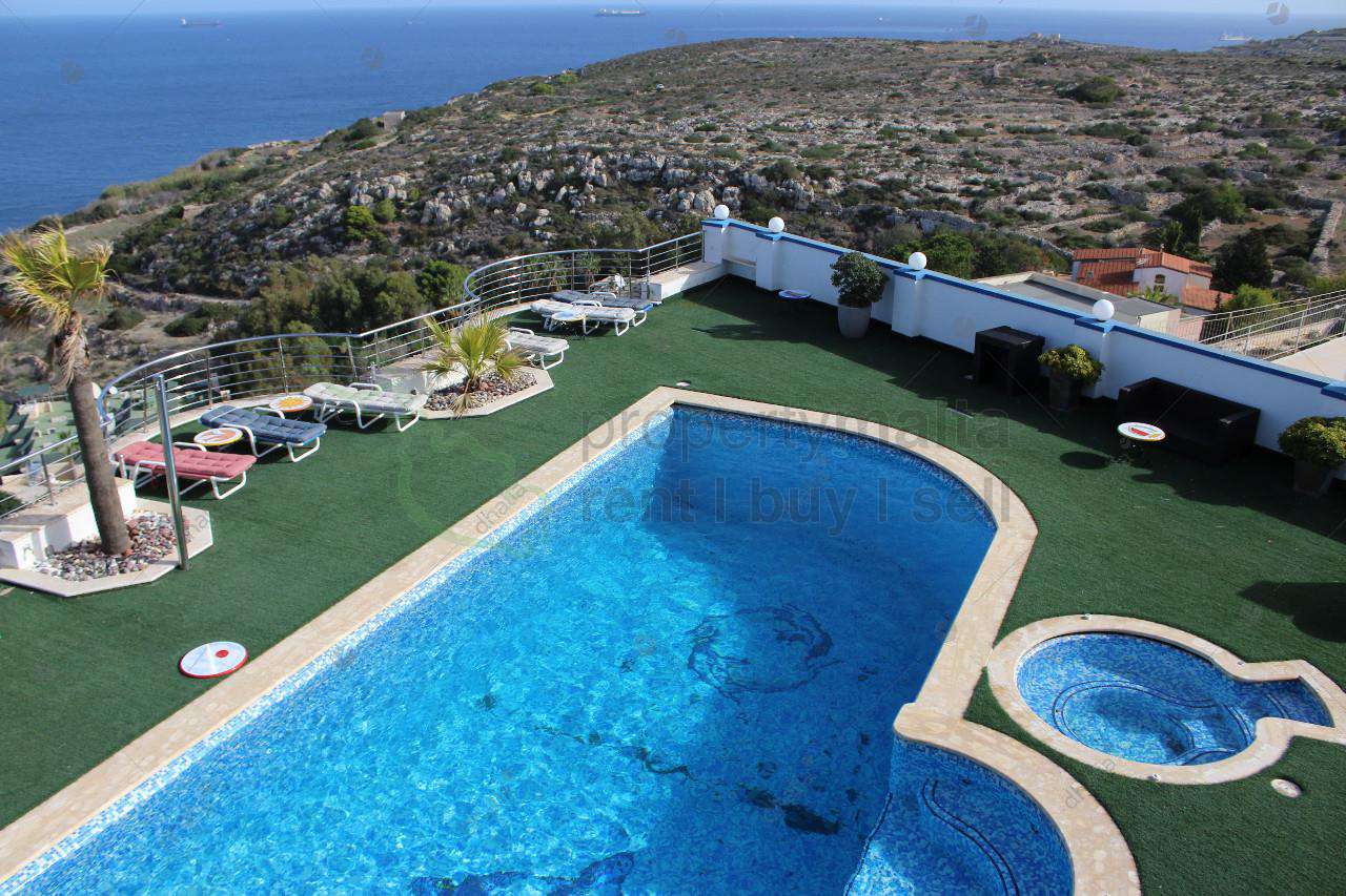 A truly unique Fully Detached Villa in one of Malta`s most exclusive residential addresses set on a plot of approximately 1500sqm. The layout of this exceptional property is in a circular form and set on two floors with a surrounding garden making it ideal for those who love having guests over and throwing large dinner parties. You enter the property and are welcomed by a large entrance hall which opens up into a lovely open plan and fully equipped, kitchen/living/dining space with a bar, fireplace, formal sitting area and front terrace enjoying breathtaking view of Malta`s sister islands and the beautiful Mediterranean sea. At this same level are three bedroom suites with their own private bathroom, walk-in wardrobe and enjoying the same stunning views. Moving down to the next floor either by stairs or by lift you enter a massive entertaining hall with its own kitchen which can cater for large receptions and a relaxing outdoor pool area with barbecue area, stone wood burning oven and commanding panoramas you would experience on a cruise ship. complementing this property are three more bedroom suites, and the possibility of more, a 10 car garage, a wine cellar and much more. Needs to be seen to be appreciated.
