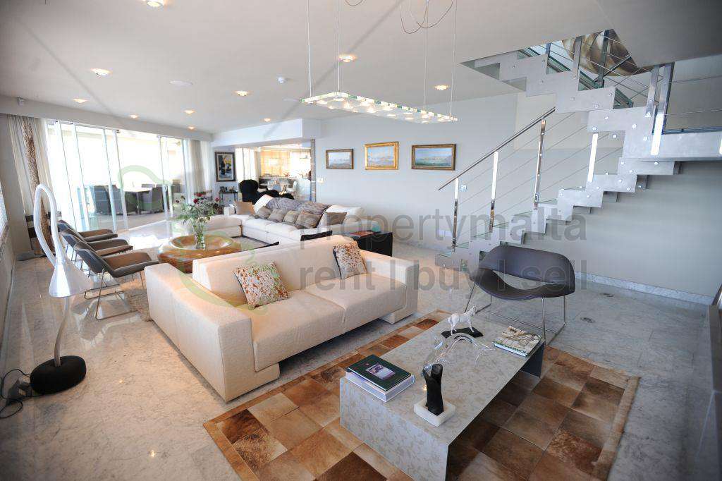 Unique, corner, seafront duplex penthouse having a 130-foot frontage. Accommodation comprises a large entrance hall, leading to an open-plan kitchen/breakfast, living/dining room onto the terrace all enjoying the spectacular views, two double bedrooms, main with ensuite facilities, main bathroom, and a guest toilet. Upstairs main bedroom with jacuzzi and ensuite. Large spacious terrace ideal for entertaining.