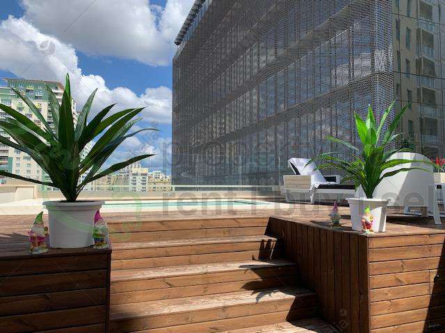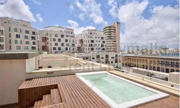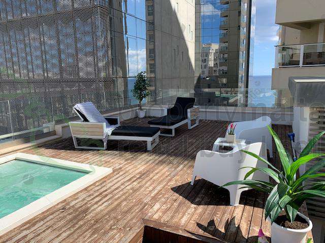 This designer finished and furnished, triplex apartment is located in Malta`s largest shopping mall, with the finest restaurants and cafés. The property comprises a welcoming hall, a spare toilet and a sauna leading to an open-plan kitchen/living/dining area, a sunny terrace overlooking the Tigne Piazzetta and enjoying side sea views. The property also enjoys four double bedrooms, a family bathroom, ensuite facilities and a laundry/utility room with a drying area. Complementing this property is a one-car space. This property is being offered fully furnished, fully air-conditioned, with an intercom/intelligent lighting incorporated, together with a composition of marble/micro cement flooring, a timber staircase, concrete ceilings, the majority of the custom-made furniture and much more. Finally a roof garden with wooden decking and a splash pool, most ideal for entertaining.