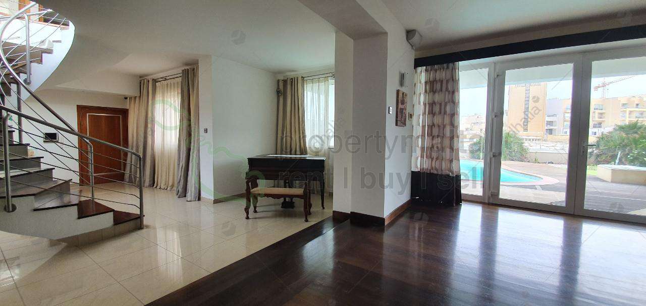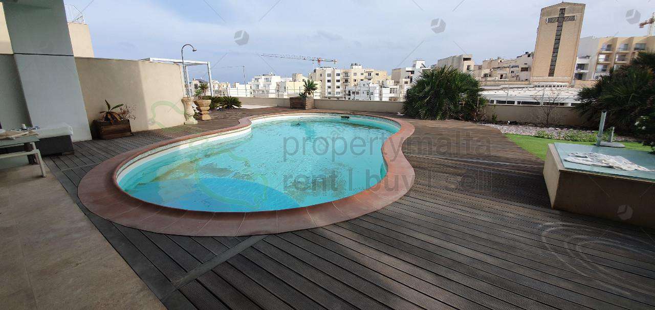 This magnificent, contemporary styled penthouse, is located in a truly splendid location, in a prestigious block with the view of Spinola Bay, with a 350 square metres roof terrace, 25 metres frontage, on two floors, heated swimming pool, airspace, and a four-car garage. The property has a generous hall with a cloakroom, a guest toilet, a split level lounge/dining room overlooking the pool deck and a large fully equipped kitchen/living room. Occupying the upper level are three double bedrooms all with ensuite, main bedroom with a walk-in wardrobe and surrounding terraces overlooking the pool terrace while having fantastic views of the bay. This exclusive property is truly a luxurious sky villa set in the heart of the town close to all needs and with total privacy. Excellent opportunity.