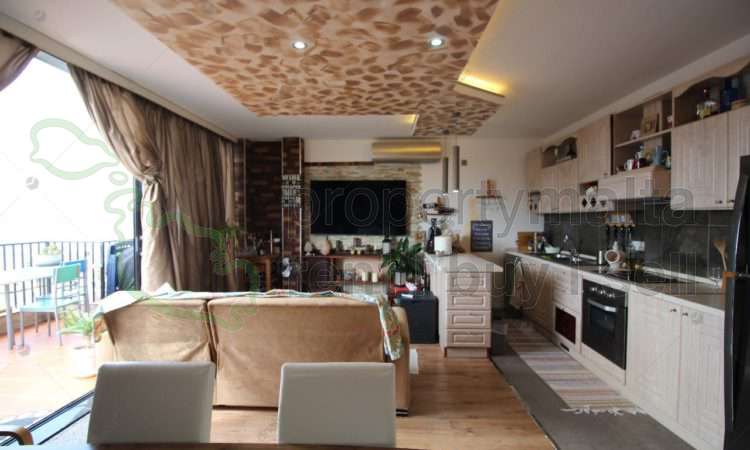 Duplex penthouse just came up for sale. Situated just a few metres from the sea and set on the fifth floor. The layout offers a corridor which leads to two bedrooms, bathroom and an ensuite, large storage/washroom. A spacious open-plan kitchen/living/dining area overlooks the terrace with distant country and sea views. The upper floor(sixth) is currently an unfinished project which still has to be completed. The property is suitable for first time buyers or as a rental investment. Airspace comes along with the property.