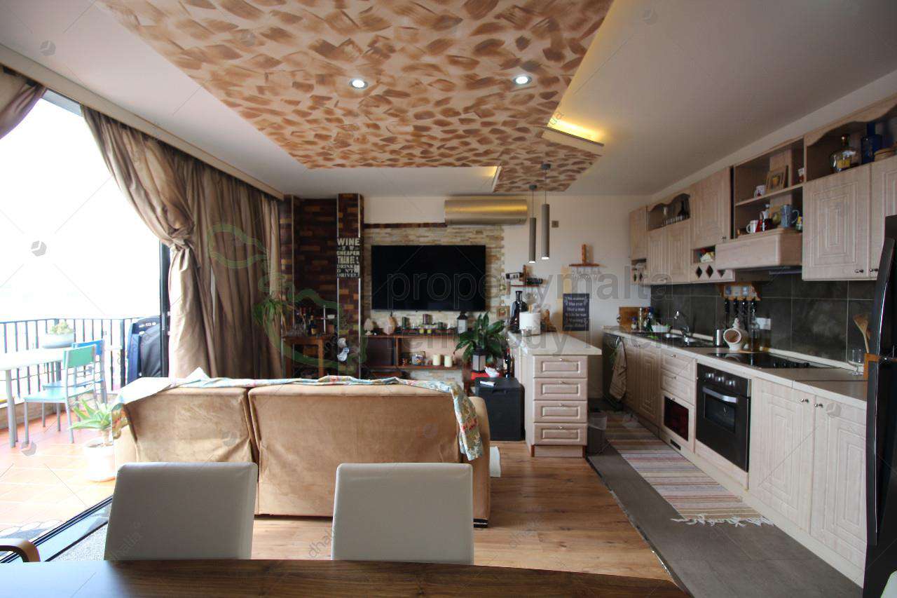 Duplex penthouse just came up for sale. Situated just a few metres from the sea and set on the fifth floor. The layout offers a corridor which leads to two bedrooms, bathroom and an ensuite, large storage/washroom. A spacious open-plan kitchen/living/dining area overlooks the terrace with distant country and sea views. The upper floor(sixth) is currently an unfinished project which still has to be completed. The property is suitable for first time buyers or as a rental investment. Airspace comes along with the property.