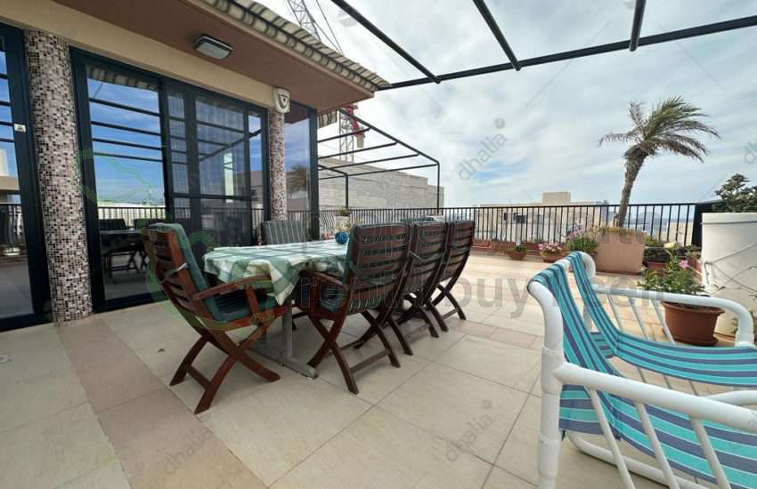 Luxuriously finished duplex penthouse situated in one of the most prominent streets in Valletta enjoying views of the Grandmaster`s Palace, St Elmo, and surroundings. Upon entrance one finds a well-decorated sitting room, leading onto a study room which can easily be turned into an additional bedroom. On the other side of the sitting room, one can access the main bedroom, combined with a larger than usual bathroom (enjoying bath, shower and dressing space) and balconies. On the upper level one finds an open plan kitchen/ living, and dining area enjoying two large terraces on each side. Both terraces are equipped with outdoor furniture (including a jacuzzi). The top roof level can also be transformed according to one`s likings and enjoyment.