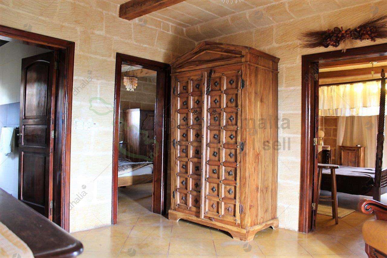 Spacious and traditional farmhouse with views across the country to the Freeport and Marsaslokk bay. Surrounded by, fig, orange and lemon trees, this well restored farmhouse features a swimming pool as well as a grapevine covered arched walk way, providing a shaded seating area. Inside the property one is welcomed into the sitting room with it`s log fireplace, and then through the hall. To the right, a downstairs bathroom, and on the left the kitchen diner which again leads to an outside terrace. There is also a bedroom on this level. There is access to another terrace, two further bedrooms, the main again with it`s own terrace, a shower room and access to the roof. A truly outstanding property.