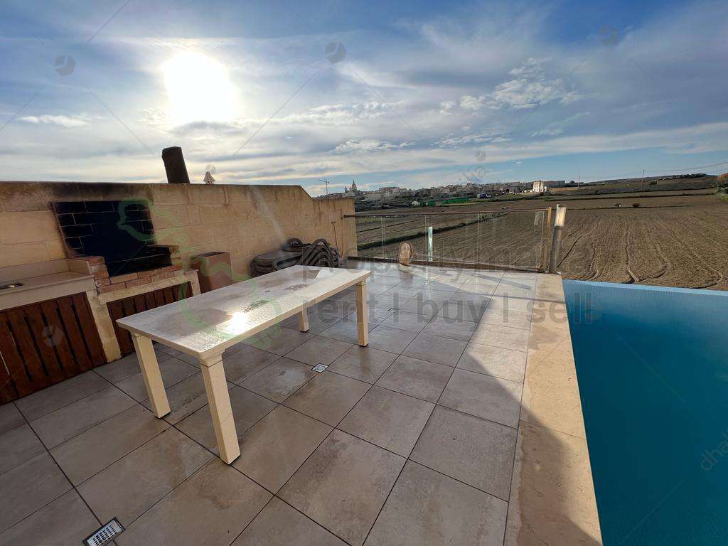 Newly finished and furnished farmhouse located in Gharb in a tranquil area. This property consists of a combined kitchen/living/dining room, four bedrooms, four bathrooms and a terrace. House also have a private swimming pool with decking/BBQ area enjoying open country views , a roof terrace, underlying garage and fully air-conditioned.