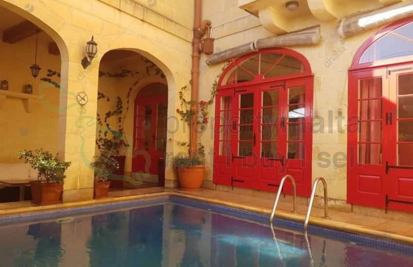A stunning farmhouse situated in the beautiful village of Xaghra. The property consists of a fully equipped kitchen and dining room, a separate living area, three spacious bedrooms, four bathrooms, and a private swimming pool with a well-sized decking area and terraces. This house is also equipped with air-conditioned.