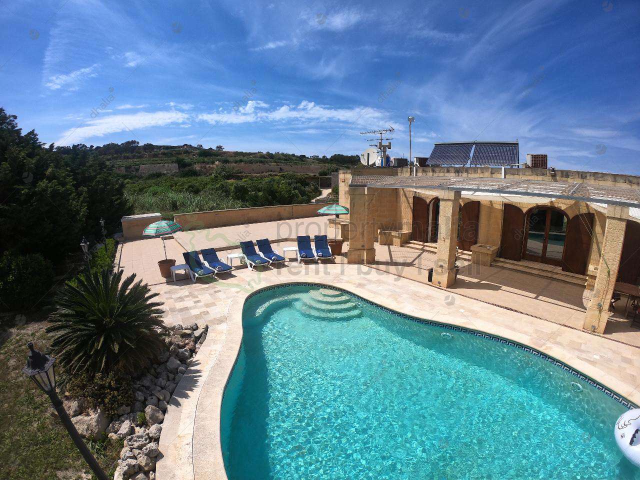 Luxury unique farmhouse finished to high specifications, set in the country side with total privacy. Property is complete with 22,000 square metres of surrounding fields, large swimming pool, BBQ area and gazebo. The accommodation comprises a hall, large open-plan living/dining/kitchen, four double bedrooms all with ensuite bathrooms, a three-car garage plus drive-in. This property enjoys magnificent sea views from all rooms.