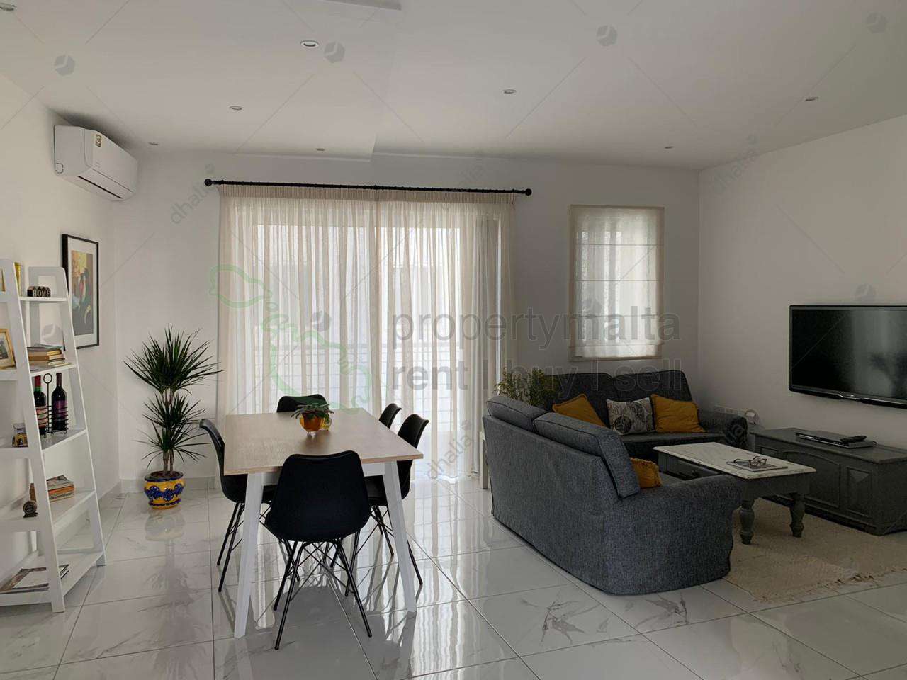 A modern and newly done up apartment. Layout comprises an entrance leading to a kitchen/sitting/dining room with front balcony, one double bedroom with ensuite facility and a balcony, twin bedroom also with a balcony, single bedroom, main bathroom and a boxroom.