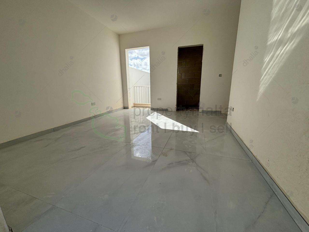 Balzan – Centrally located block, enjoying spacious apartments. The layout comprises a large open plan kitchen/living/dining with front terrace, main bathroom, three double bedrooms (main with ensuite), a washroom, and a back balcony. Optional interconnected garages are available at the basement level.