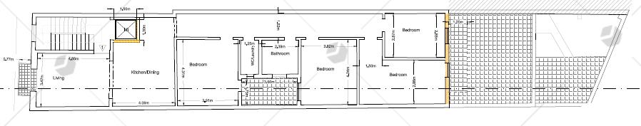 A ready-built, large four-bedroom apartment measuring approximately 157 square metres (144 sqm int/13 sqm ext). The layout comprises an open plan kitchen/living/dining leading to a front balcony, a main bathroom, a master bedroom with an ensuite, another three bedrooms, and a back terrace. Freehold.