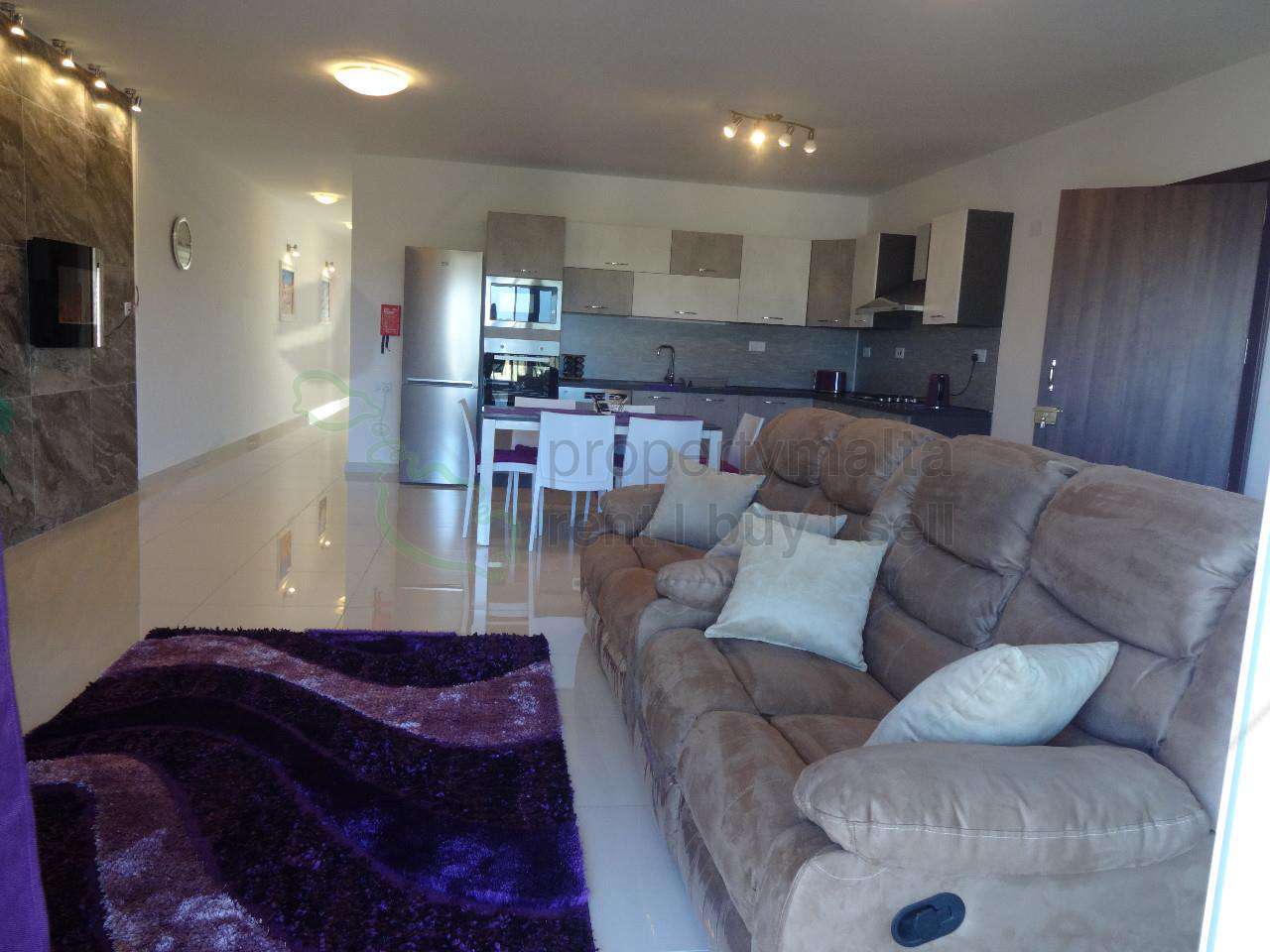 Very modern apartment situated in a quiet residential area opposite a green area. Layout consists of an open-plan kitchen/living/dining room, front large balcony, two double bedrooms (main with ensuite), a single bedroom and a bathroom. Property is being offered fully equipped with two air-conditioners installed. A one-car garage is also included in the price.