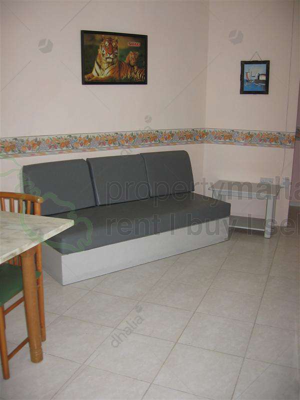 Compact furnished two-bedroom apartment situated in Bugibba. The property has a kitchen/living/dining room, two double bedrooms, and a shower room.