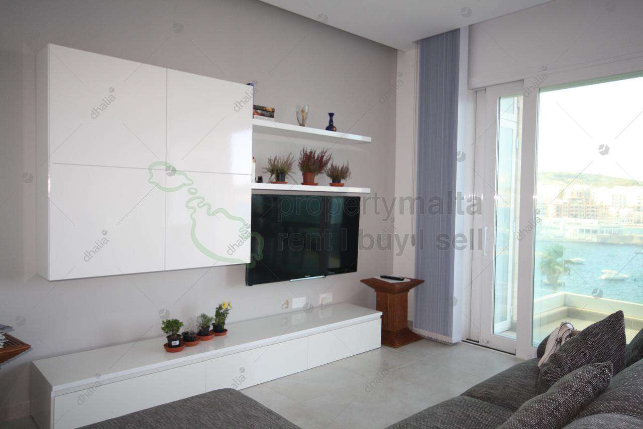 Stylish, modern two-bedroom fully airconditioned apartment in Bugibba. The property consists of two double bedrooms, a family bathroom, main with ensuite, an open-plan kitchen, dining, living area, leading onto a large balcony with spectacular views of St. Paul`s Island. Must see!
