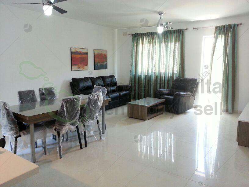 Luxuriously furnished three-bedroom air-conditioned apartment situated in Bugibba. The property consists of a kitchen/living/dining, shower en suite, bathroom, and a front balcony.