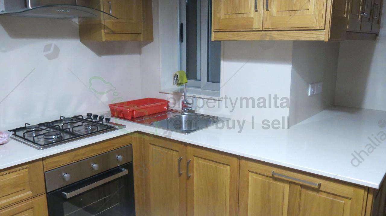 Luxuriously finished three bedroom apartment in the heart of Bugibba close to all amenities. Property comprises a kitchen/living/dining area leading to a balcony enjoying side sea views, a shower room, spare lavatory room, a single bedroom and two double bedrooms (one leading to a back balcony).