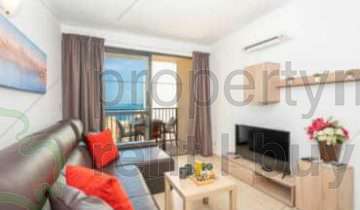 This bright and spacious apartment offers comfortable living for up to six guests, featuring a front balcony and a back terrace complete with outdoor furniture for relaxing or open-air dining. Served by a lift from ground level, it includes a main double bedroom, an additional sleeping area with two twin beds, a modern bathroom, and a generous living room with a double sofa bed. The fully equipped kitchen boasts a dishwasher, electric oven and hob, fridge-freezer, toaster, and washing machine, while the entire apartment is fully air-conditioned for year-round comfort. Guests enjoy fast, unlimited Wi-Fi throughout, as well as free IPTV with hundreds of international channels.