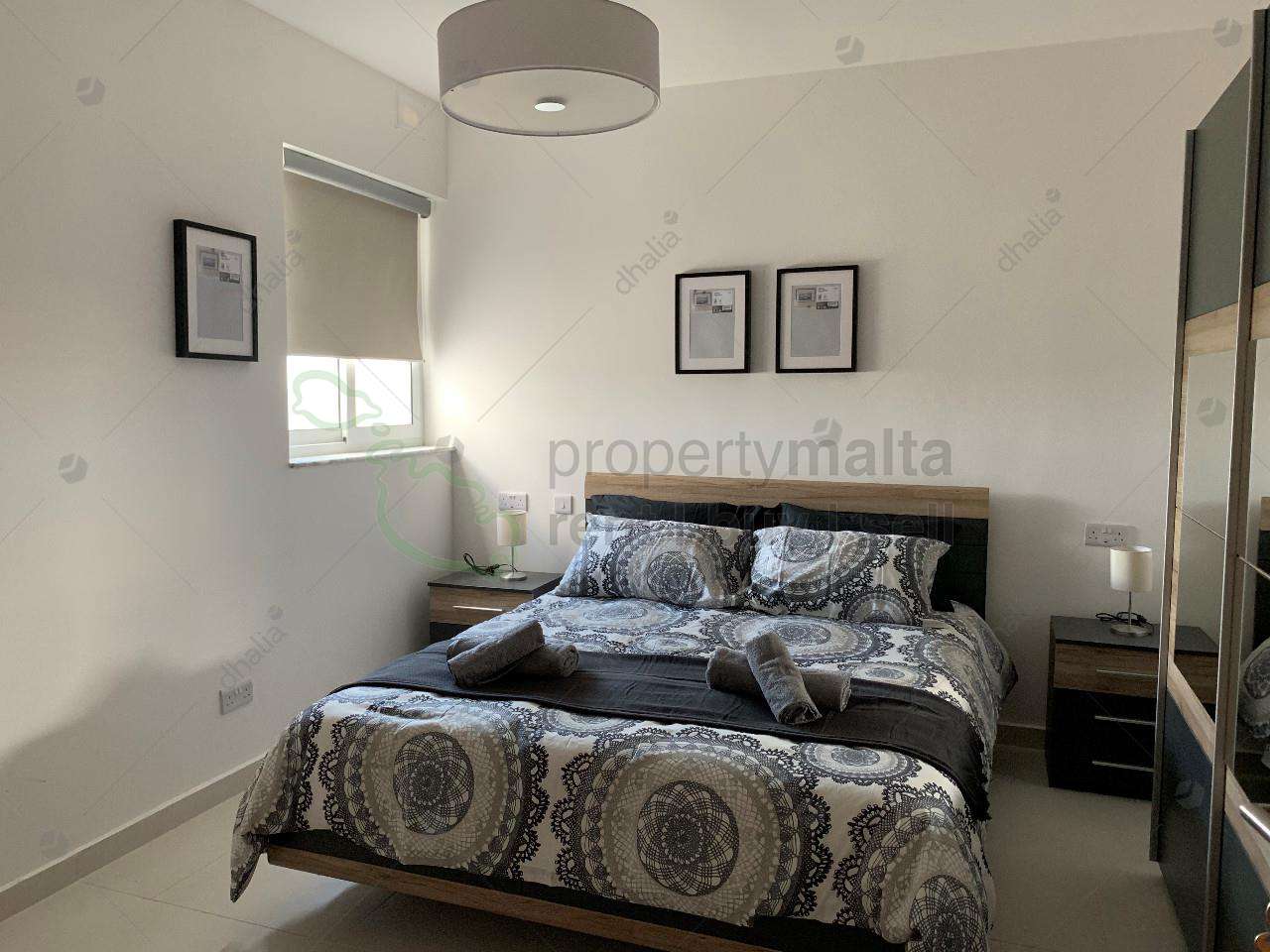 Fourth-floor apartment located in Bugibba. Accommodation comprises an open-plan kitchen/living/dining area, two double bedrooms, two bathrooms, a laundry room, and balconies. The property is fully air-conditioned and fully equipped.