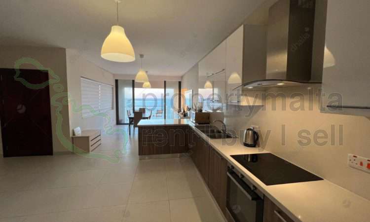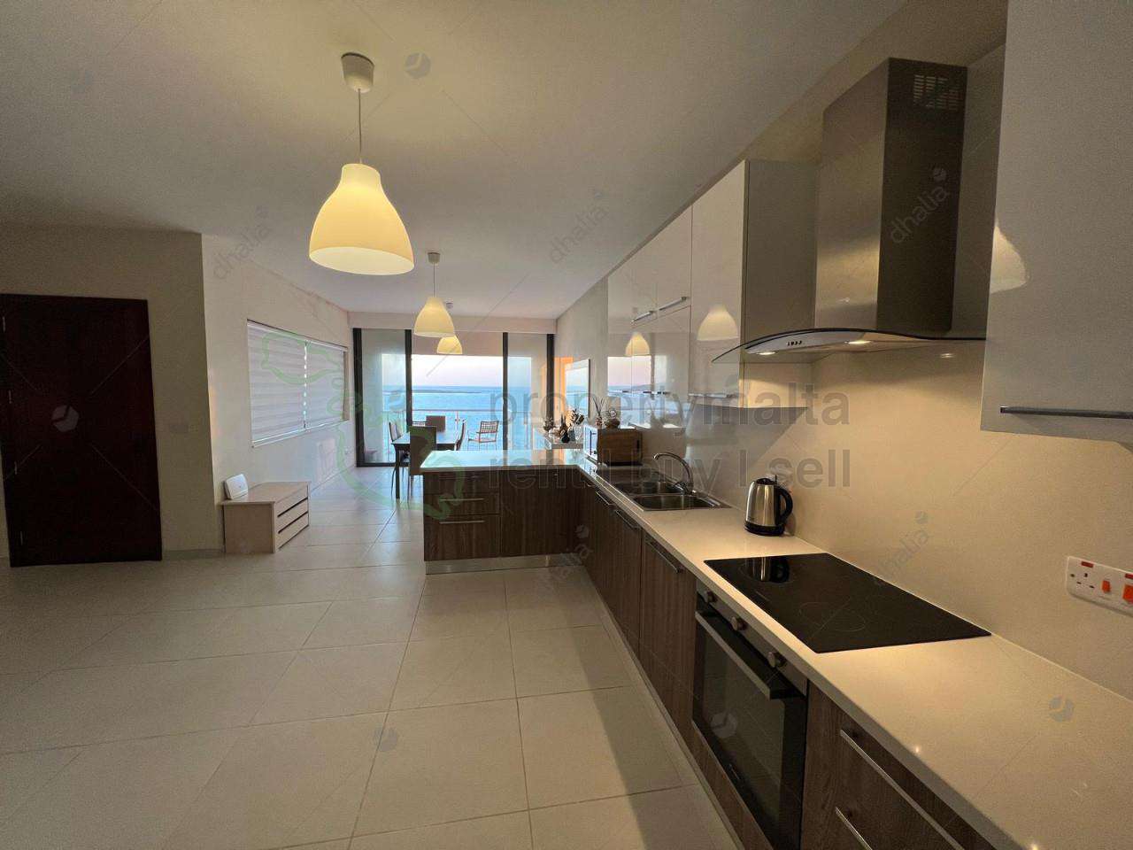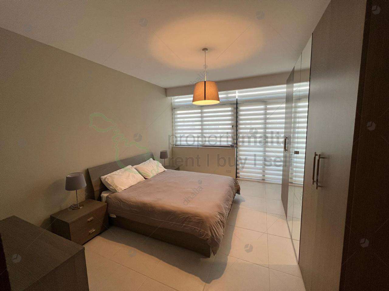 Bright seafront apartment, very nice and new, located on the Bugibba promenade. Close to all amenities. The property features 2 bedrooms, 1 bathroom, a small front terrace, and a back balcony.