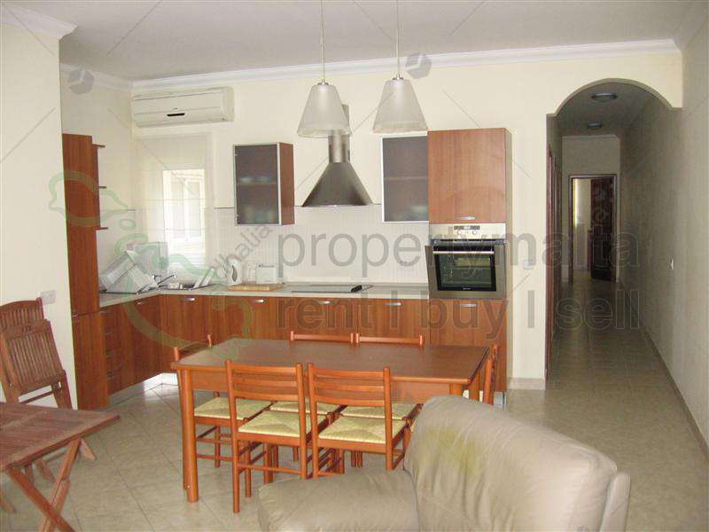 A nicely finished, spacious three-bedroom apartment in Bugibba. Accommodation consists of a large combined kitchen/living/dining area leading onto a good-sized balcony with sea views, three bedrooms, a bathroom, shower room, and air-conditioning.