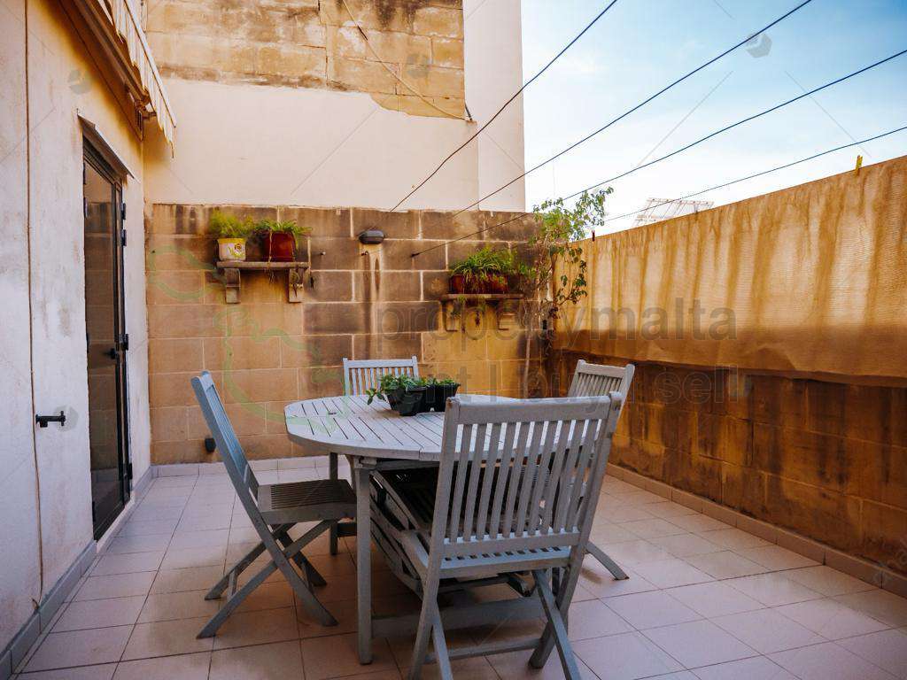 A larger than usual apartment having a terrace and ownership of half roof. This first-floor apartment is located close to all amenities, in a block of only two units and is being sold furnished. The layout consists of a living room upon entrance, a kitchen/dining area, three double bedrooms, two bathrooms, a boxroom, a spacious terrace and half ownership of the roof. An optional one-car street-level garage is available.