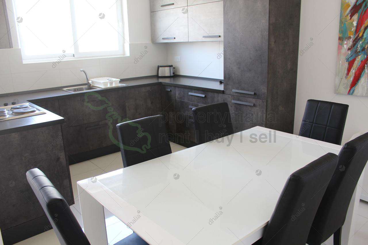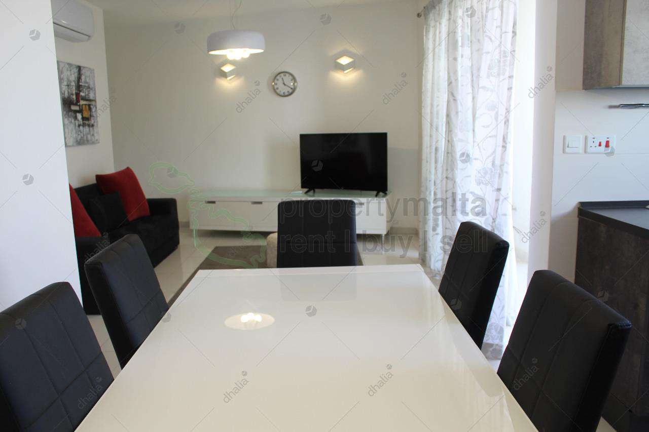 Modern and bright second-floor corner apartment situated in a good residential area. Accommodation is in the form of a kitchen/living/dining area leading to the front terrace, laundry room, bathroom, and two bedrooms with a balcony (master also with a shower ensuite). Fully equipped and air-conditioned. Served with lift.