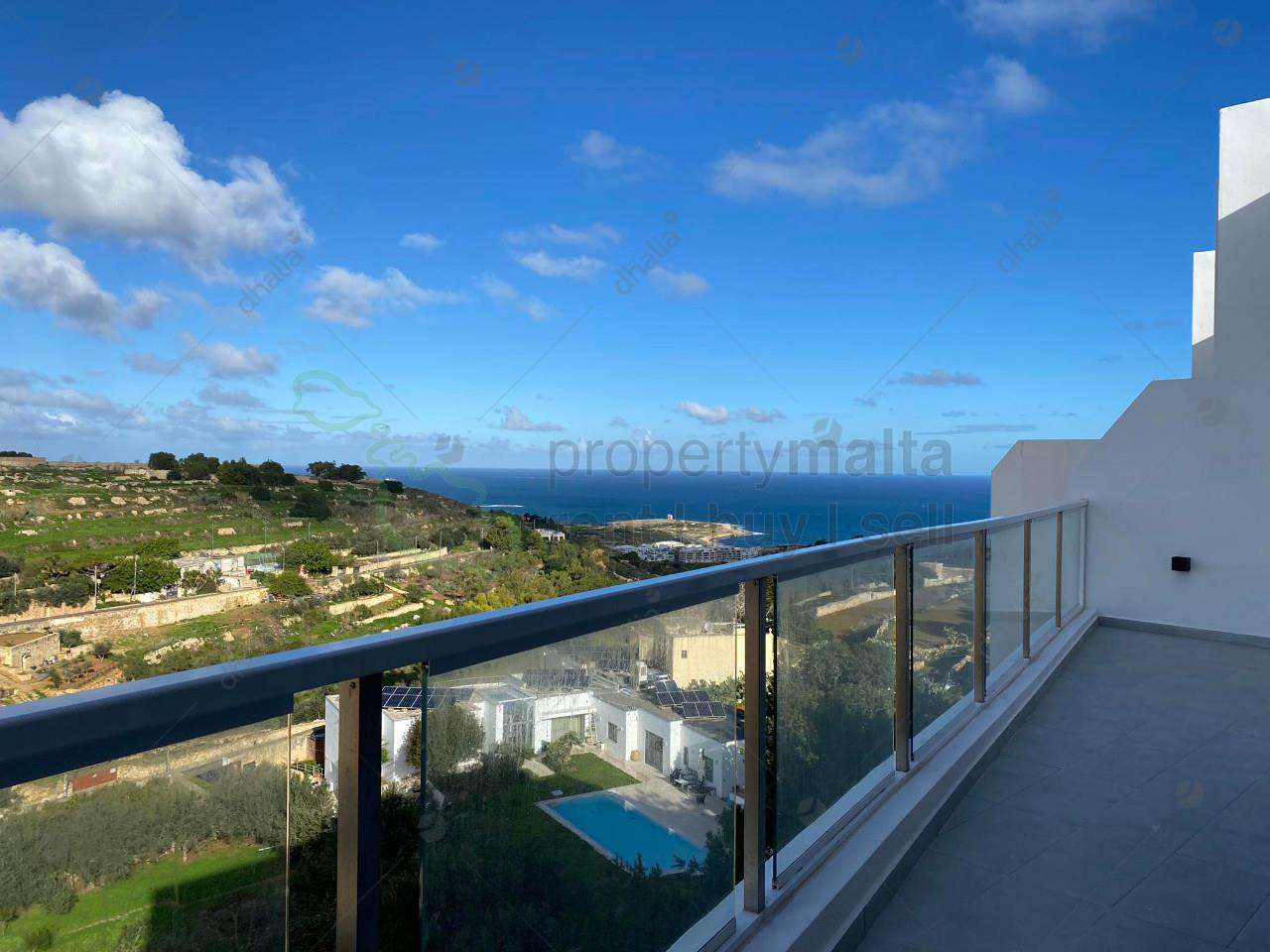 A unique, luxurious two-bedroom penthouse situated in Gharghur. The property consists of two double bedrooms, an open-plan kitchen (equipped with a dishwasher) dining/living area, main shower ensuite, family shower room and box room. The main bedroom and the living area enjoy both have a large terrace enjoying country and distant sea views.
