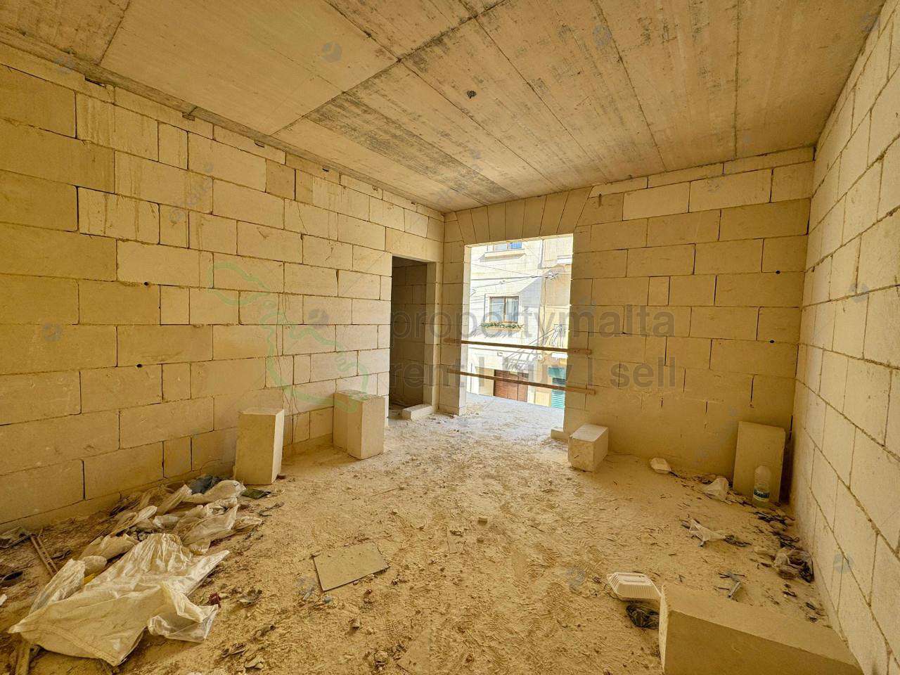 For sale in Xewkija, a first-floor apartment located only a few minutes walk away from the square. The layout features an open-plan kitchen/dining/living room with three double bedrooms and two bathrooms. The property is being finsihed exluding bathrooms and door. Optional garage available as well.