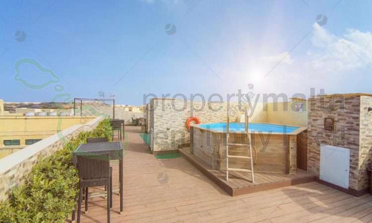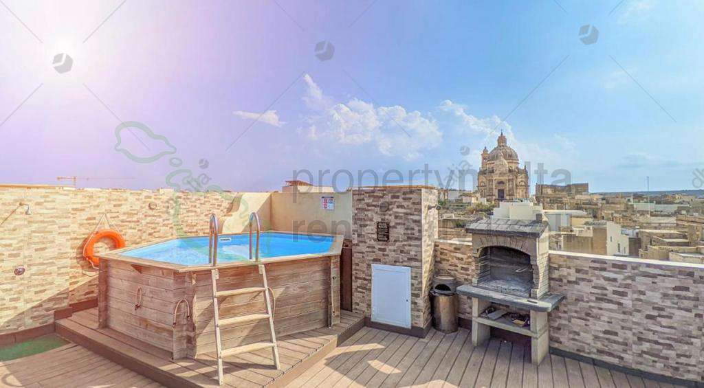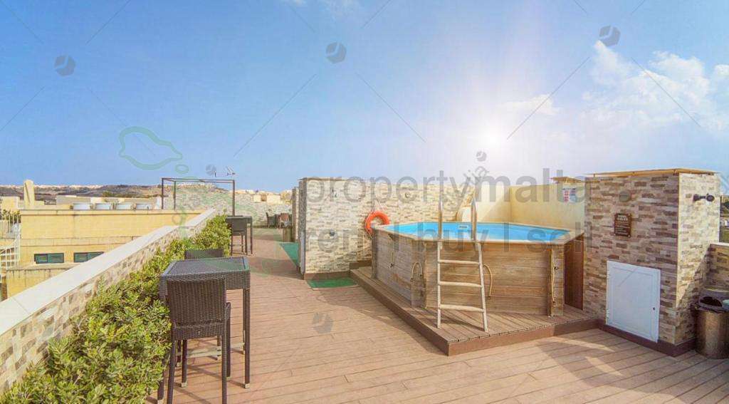 Just a few minutes` walk away from Xewkija Square lies this modern apartment, which comprises of a combined kitchen/living/dining area leading to three double bedrooms, one of which has an en suite and a main bathroom. The common area of the property offers a jacuzzi and pool, leading to a large outdoor entertaining area with beautiful views.
