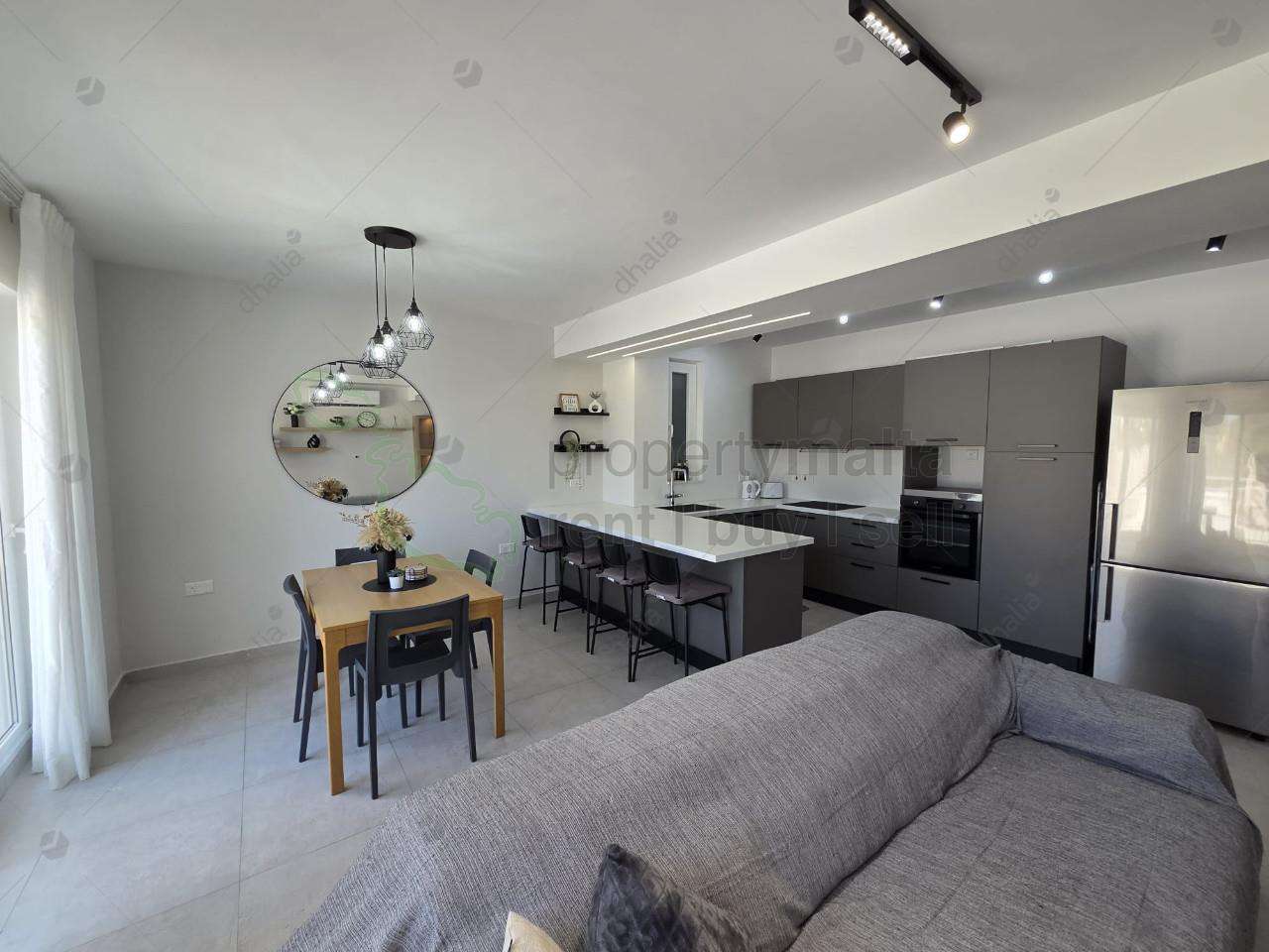 Discover this brand new luxury-finished three-bedroom, two-bathroom apartment set in the peaceful village of Kercem. Enjoying a quiet residential location, the property is designed with modern comfort in mind and finished to the highest standards. The apartment features a spacious open-plan kitchen, living and dining area filled with natural light, large windows and a front balcony enjoying breathtaking views over the lush Lunzjata Valley, creating a serene and picturesque living environment.
