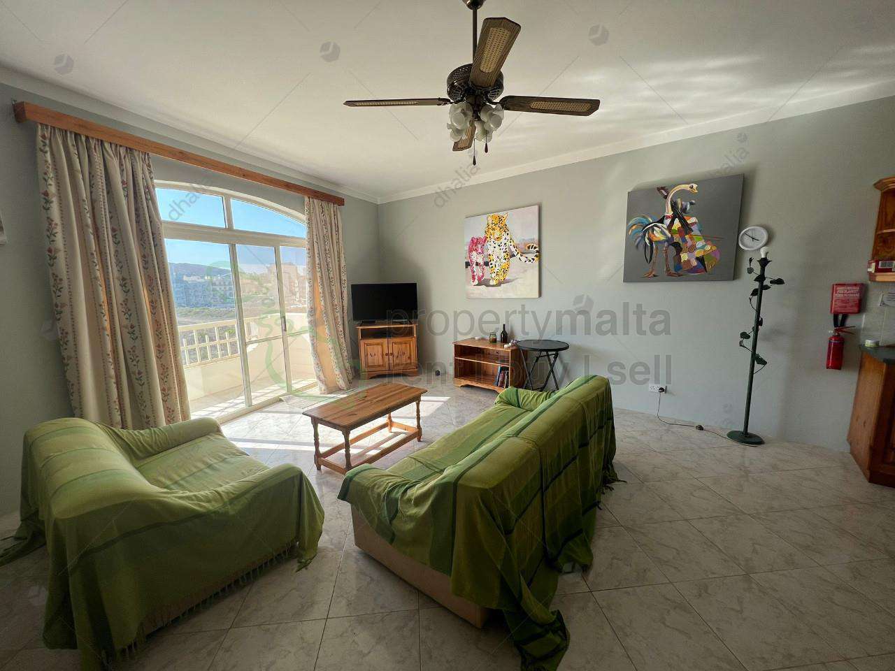 This lovely apartment is situated on the outskirts of Marsalforn in a unique area where on can go for a dip i the sea and enjoy sunset walks in the evenings. Boasting afternoon sun on its western side and plenty of natural light the property includes a combined kitchen/living/dining area that leads to a spacious front balcony with views. The apartment is composed of two bedrooms and a main bathroom. Parking is not an issue ,bus stage is only two minutes away and it is only fifteen minutes walk to the center.