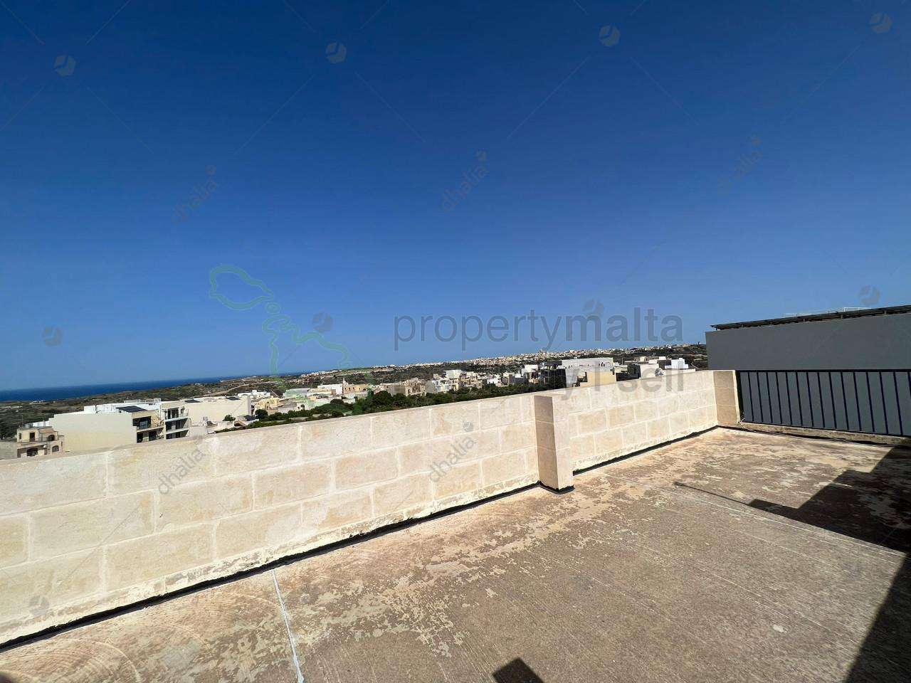 Lovely apartment located on the outskirts of the beautiful village of Xaghra. Accommodation consists of an open plan kitchen/dining/living room, two bedrooms (one with en suite facilities), the main bathroom, and two balconies. Further complementing this property is access to the rooftop enjoying amazing views and an optional garage at the basement level is also available for an additional cost.
