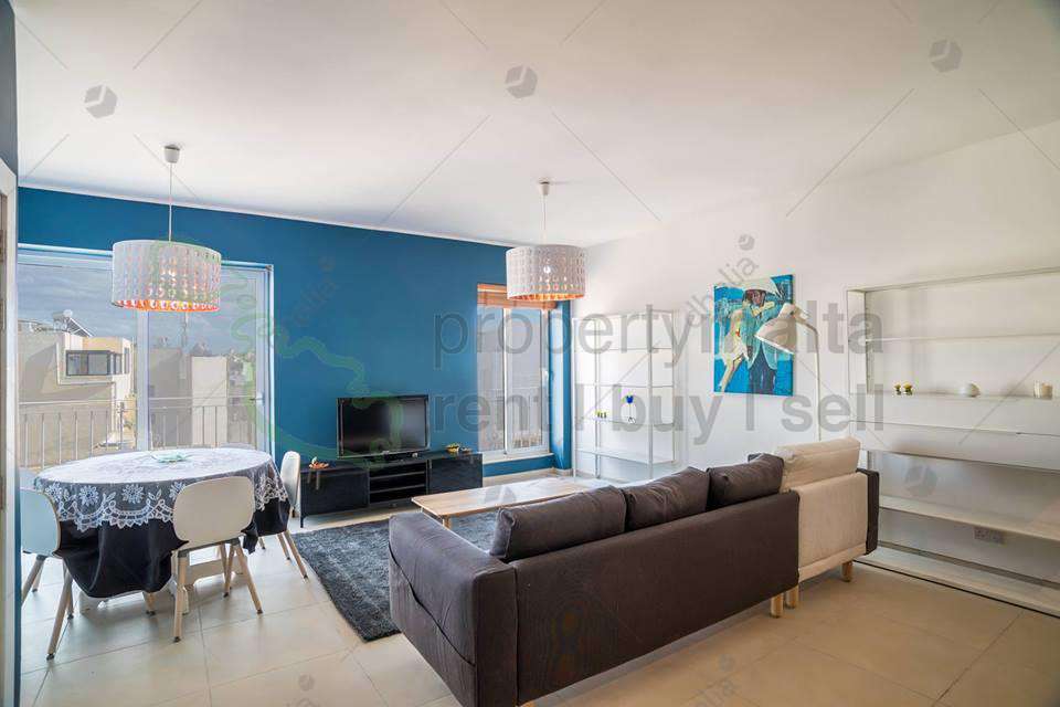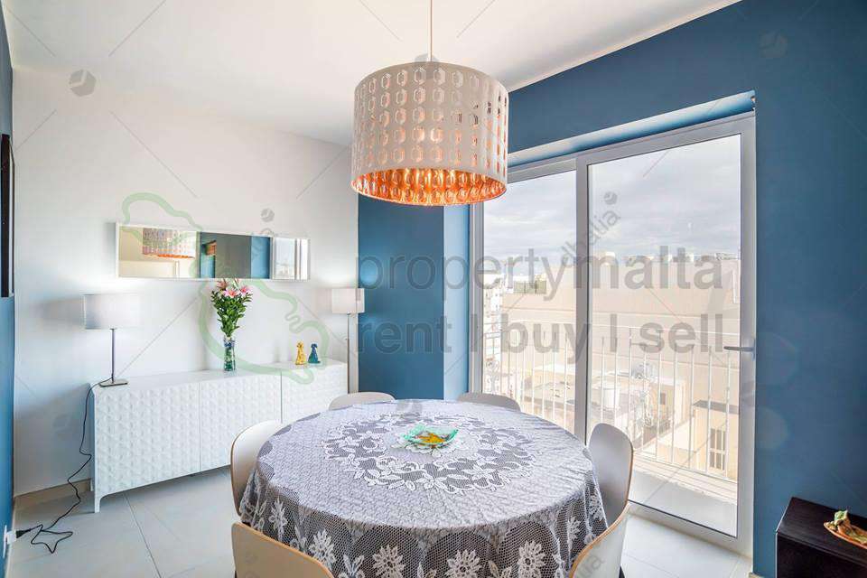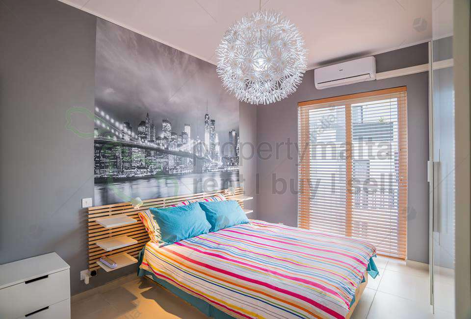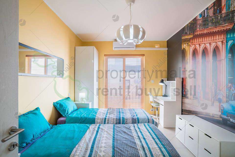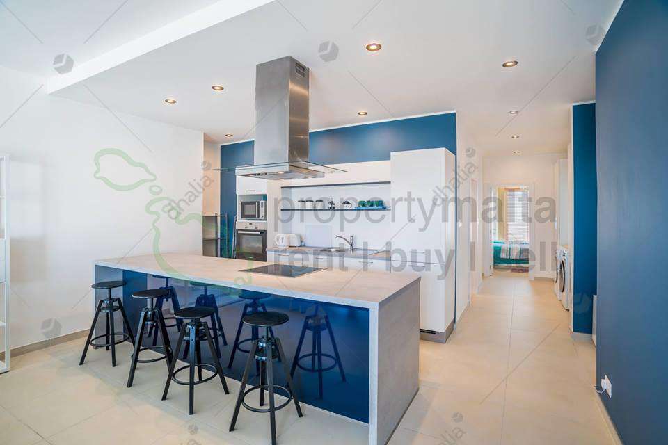 Designer-finished, bright and very spacious fourth-floor apartment forming part of a new block served with lift, located a few metres away from the Gzira seafront. Property consists of an open-plan kitchen/living/dining area with two balconies, two double bedrooms both with a balcony and main with ensuite shower and a spare bathroom. Property has a flat-screen television in the living room, kitchen is fully equipped with Bosch electrical appliances, washing machine and dryer, bedrooms and living area are fully air conditioned. Internet Service is included in the price.
