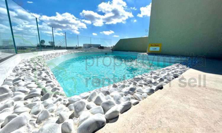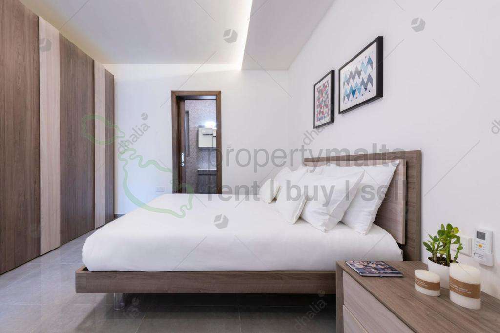 Luxuriously finished two-bedroom apartment situated in a tranquil area of Kappara, within walking distance to all amenities. The layout consists of an open-plan kitchen/living/dining area leading out onto a good-sized front balcony, two double bedrooms, main with ensuite, the main bathroom, and a washroom. Complementing this property is the use of a communal pool/terrace area which also includes the internet service. Fully equipped and air-conditioned throughout. Served with lift.