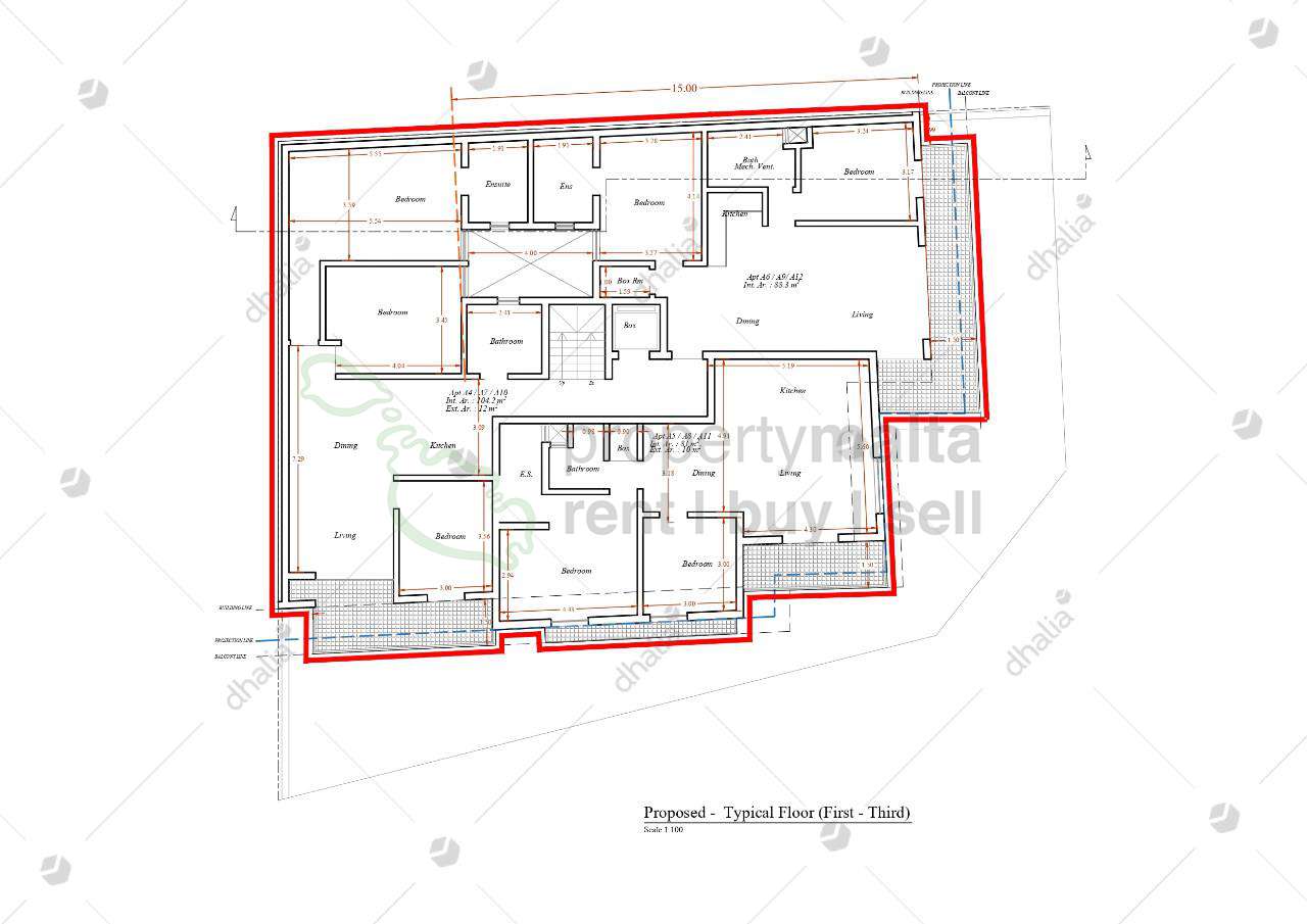 In Iklin, a third-floor apartment consisting of an open-plan kitchen/living/dining area leading to a front balcony. Accommodation includes three double bedrooms with the main having an ensuite shower, and a main bathroom. Optional garages are also available.