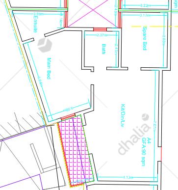 A two bedroom apartment in a squarish layout. Form consists of an open plan kitchen/living/dining leading to a spacious terrace, main bathroom, master bedroom with ensuite and a spare bedroom. Optional garages available.