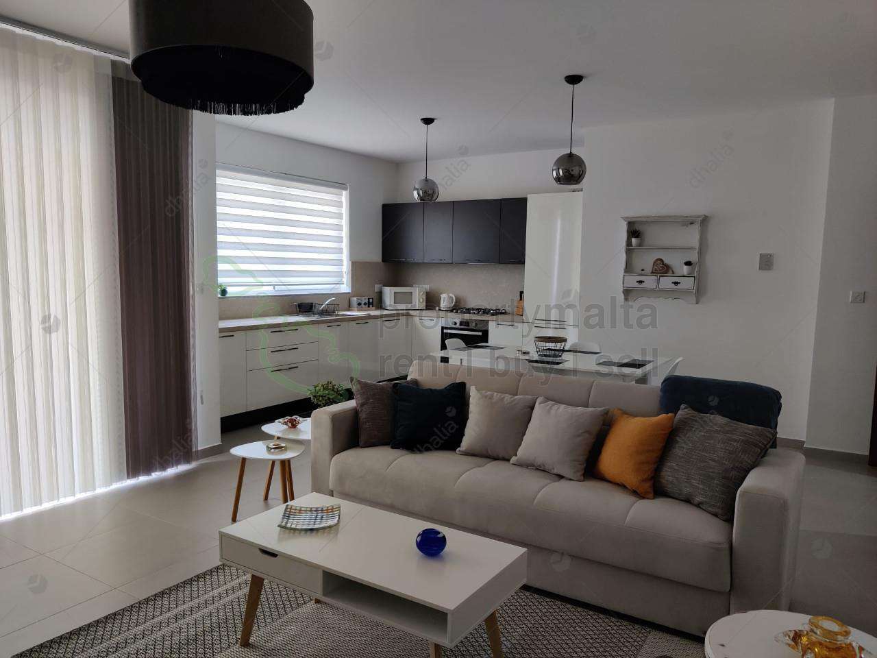 Two-bedroom apartment located close to the airport. The layout consists of an open-plan kitchen/living/dining area, bathroom, two double bedrooms, ensuite, back balcony and a front terrace. The property is modern and fully equipped.