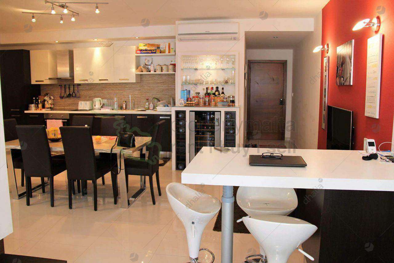 Fully furnished and immaculately kept apartment set in a sought after area of Madliena while enjoying absolute tranquility, some side sea views and country views. Accommodation having a squarish layout consists of an open plan kitchen/living/dining with a fully equipped modern kitchen, two double bedrooms, main bathroom and two front balconies. Property is fully air conditioned and served with a lift. Very highly recommended.