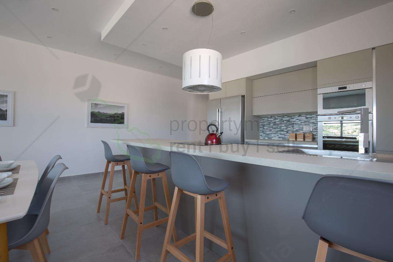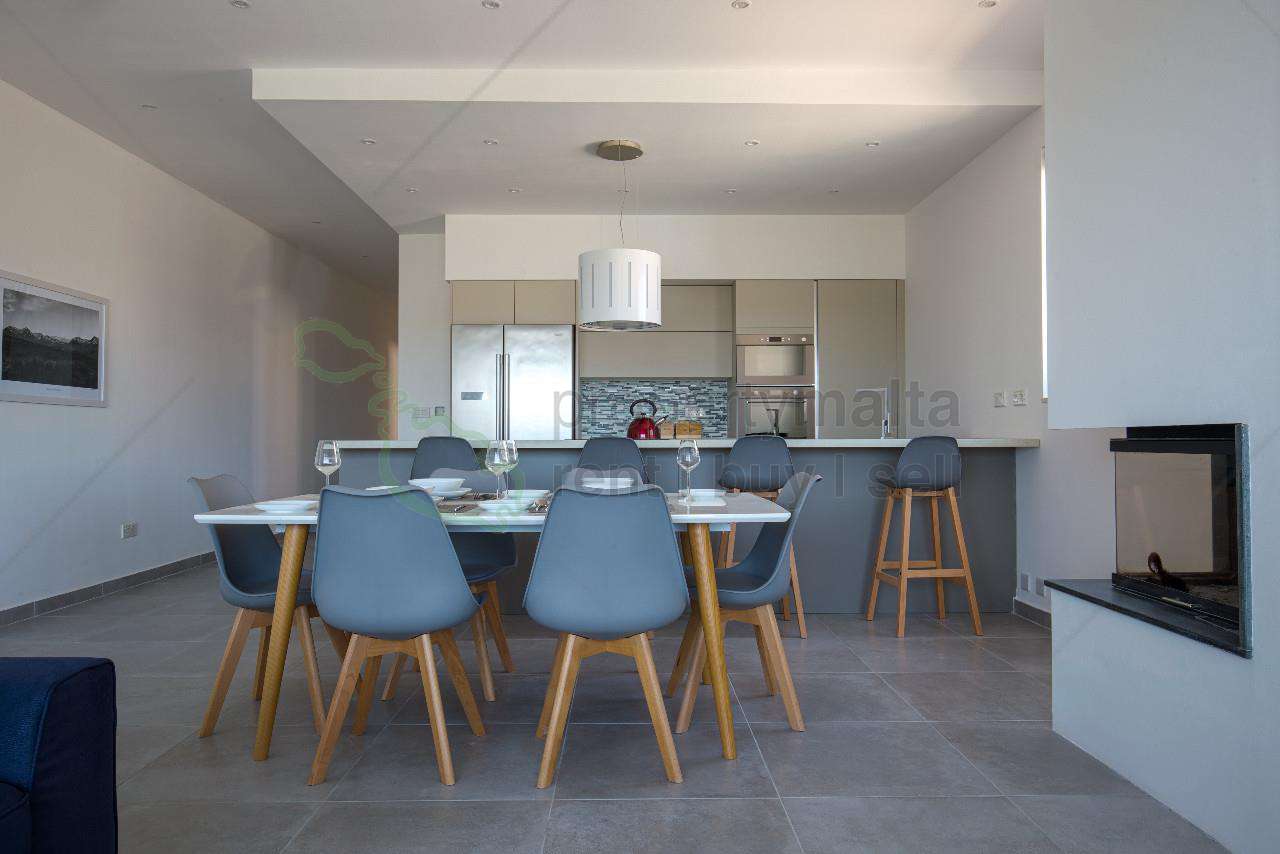 A second-floor apartment served with a lift situated in the quiet village of Manikata. Accommodation consists of an open plan kitchen/living/dining area leading to a front terrace enjoying spectacular sea and country views, three double bedrooms (main with ensuite facilities), a main bathroom, and a washroom. This property is brand new with modern finishings, is fully air-conditioned, and also includes a wood-burning fireplace for those cold winter evenings. Contact agents for immediate viewing.