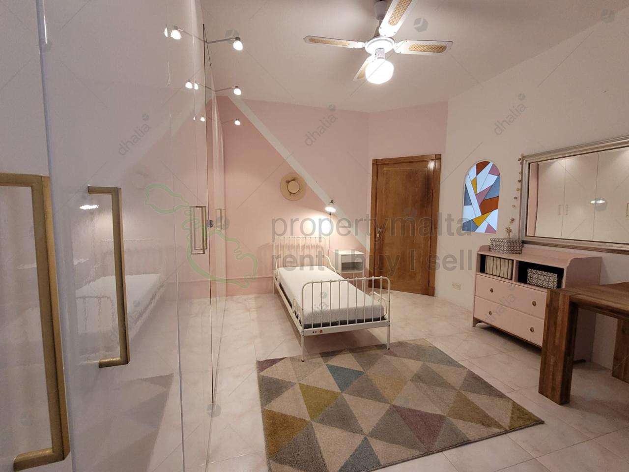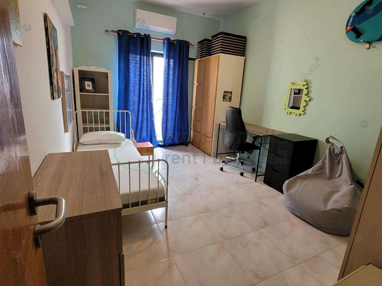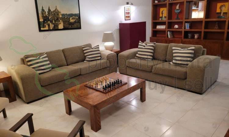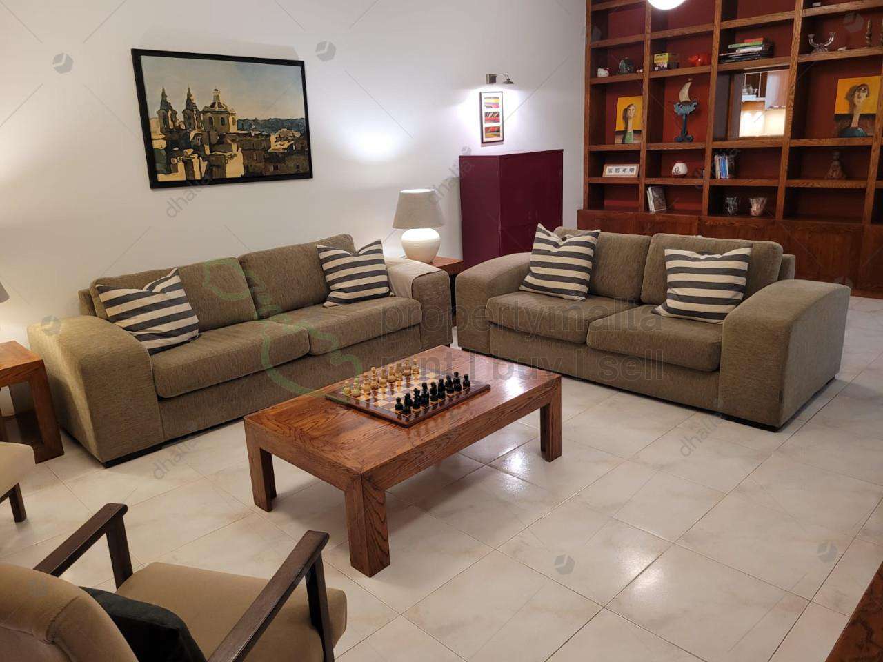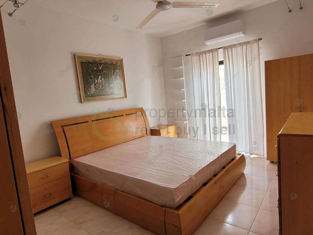 A large nicely furnished apartment is available for rent close to all amenities, rocky beaches and St Thomas sandy beach in Marsascala. In a block of six units. This apartment (200 square metres) consists of a sizeable living room, a separate fully equipped kitchen, a dining room, a boxroom, two bathrooms with bath and shower, three bedrooms and three yards that add light and air to the apartment. Two car spaces are included. The property is ideal for family, is fully air-conditioned and served with a lift.