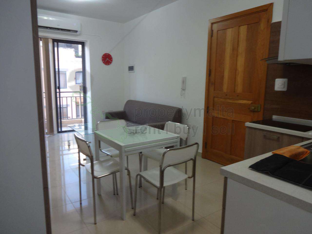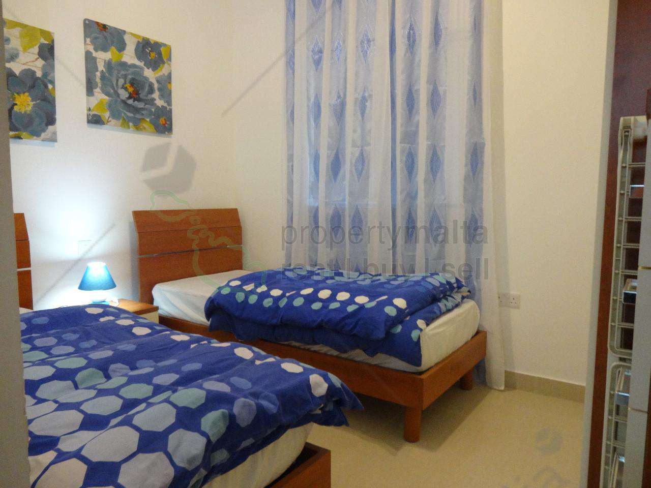 Two-bedroom modern apartment situated close to the sea. Layout consists of an open-plan kitchen/living/dining room with front balcony, small corridor leading to the main bathroom, main bedroom with an extra toilet and another spare bedroom with back balcony. Property is being offered fully equipped and served with lift.
